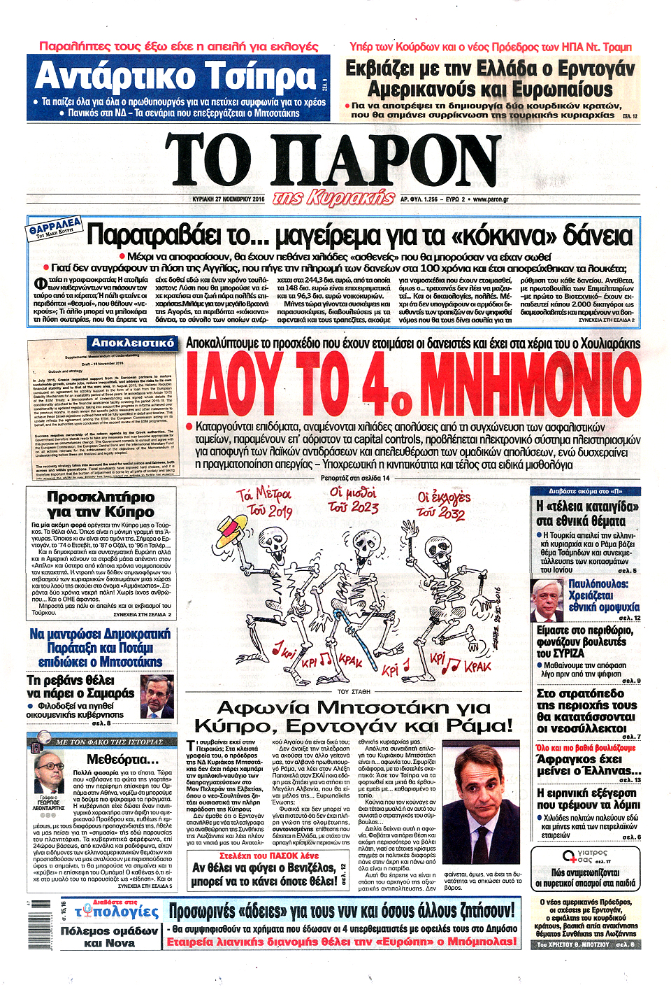 Τα πρωτοσέλιδα των Κυριακάτικων εφημερίδων 27 Νοεμβρίου 2016