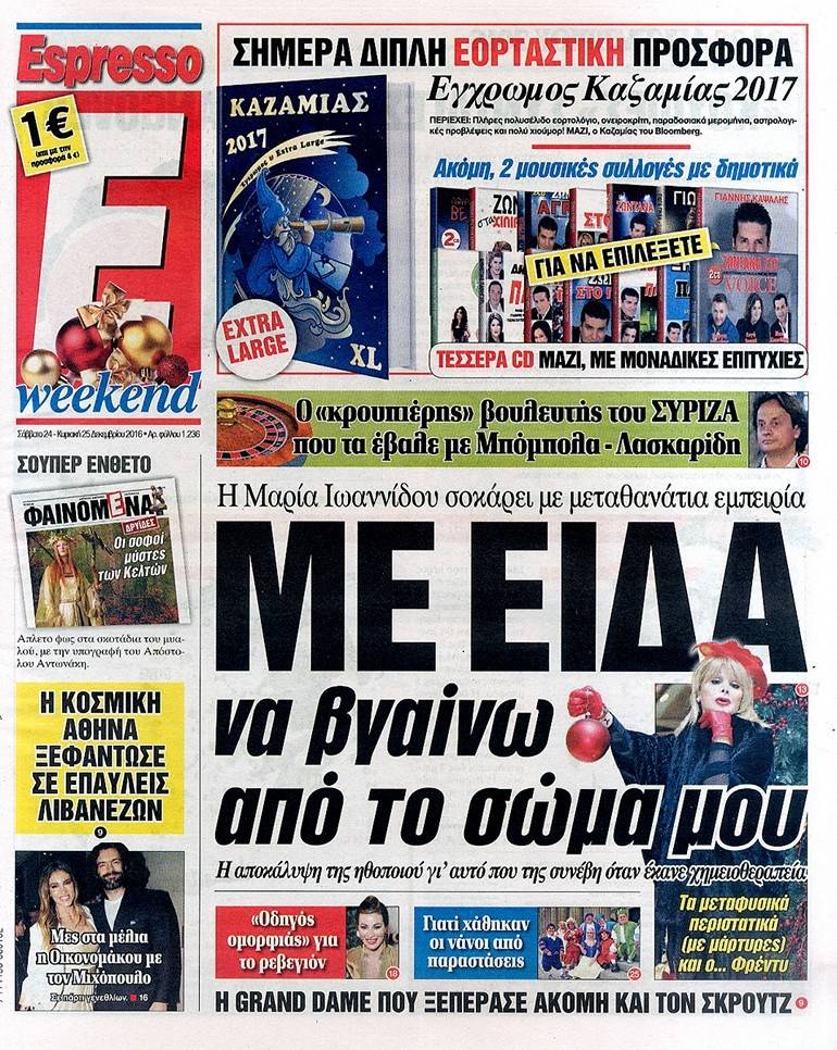 Τα πρωτοσέλιδα των Κυριακάτικων εφημερίδων 25 Δεκεμβρίου 2016