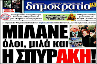 Μόνο αναπάντητες δεν άφησε η εφημερίδα «Δημοκρατία» τις αιχμές της Μαρία Σπυράκη κατά της εφημερίδας και των εκδοτών της με το χθεσινό της πρωτοσέλιδο, το οποίο χαρακτηρίζει τη Νέα Δημοκρατία ως ένα «απέραντο φρενοκομείο.