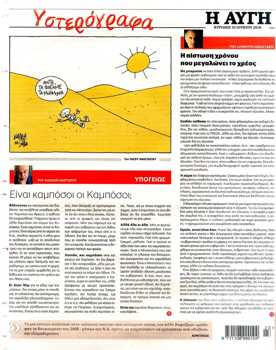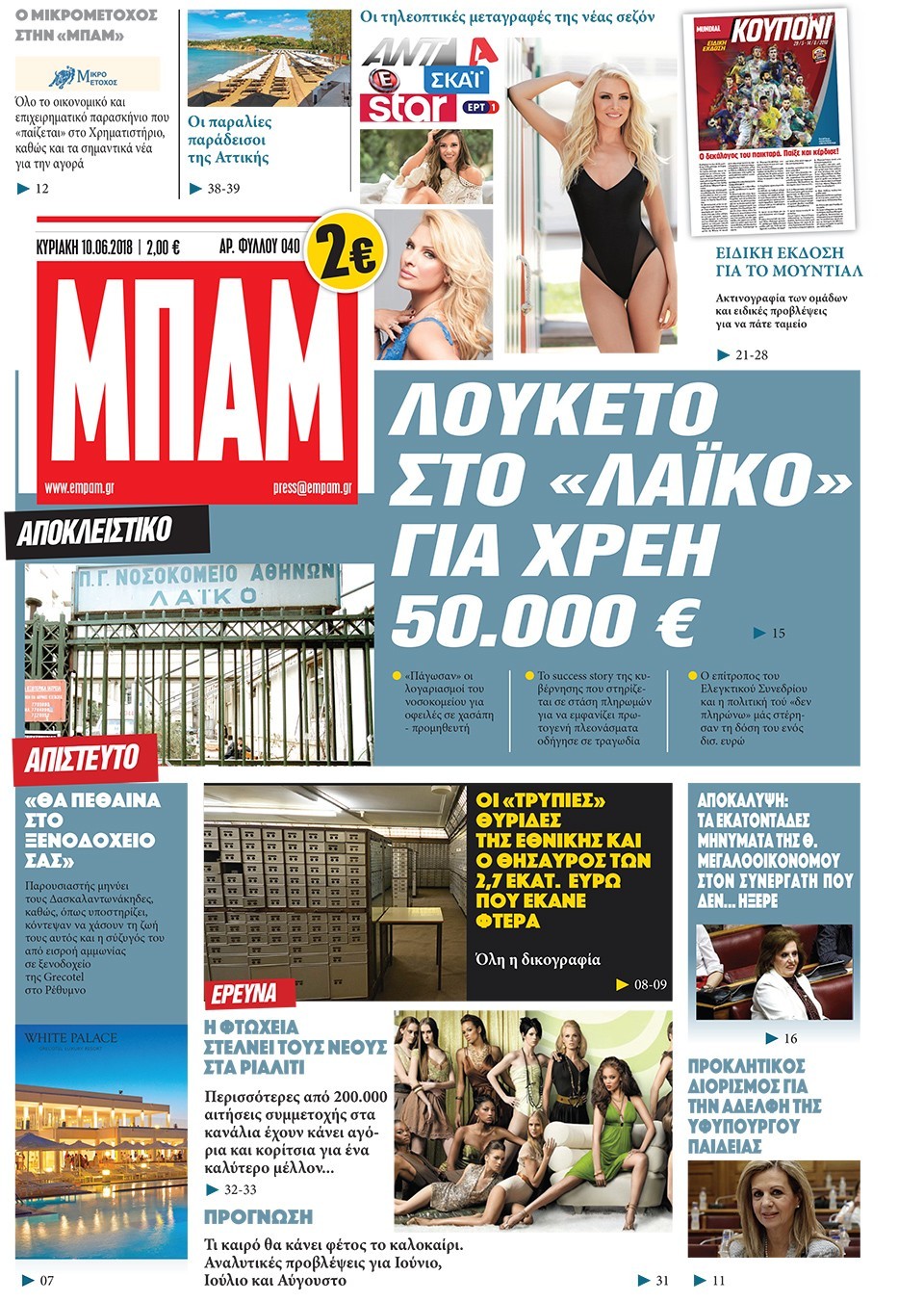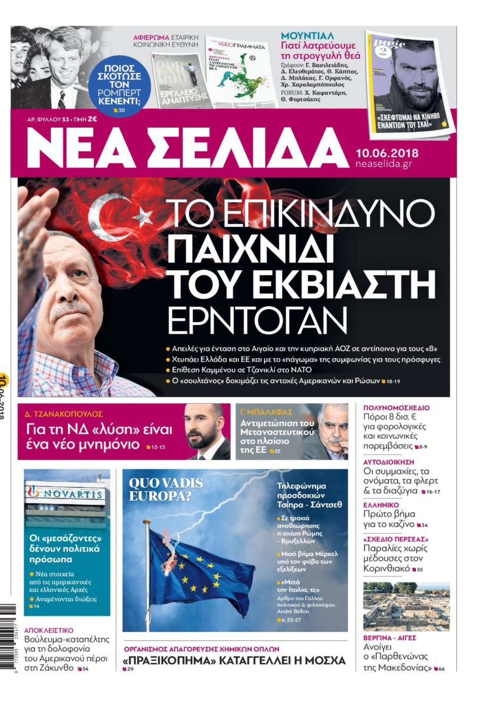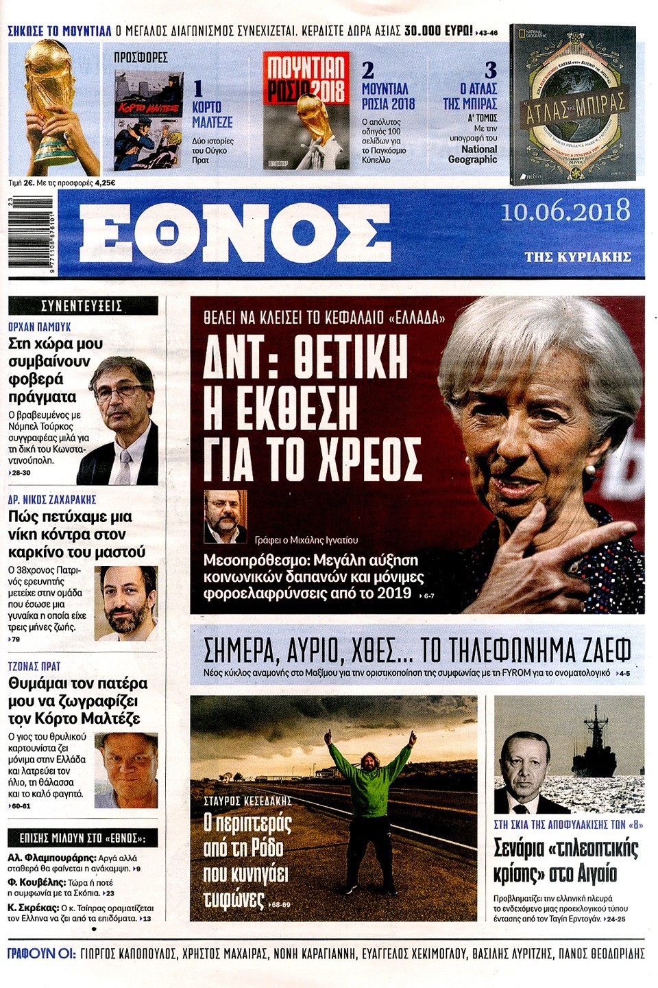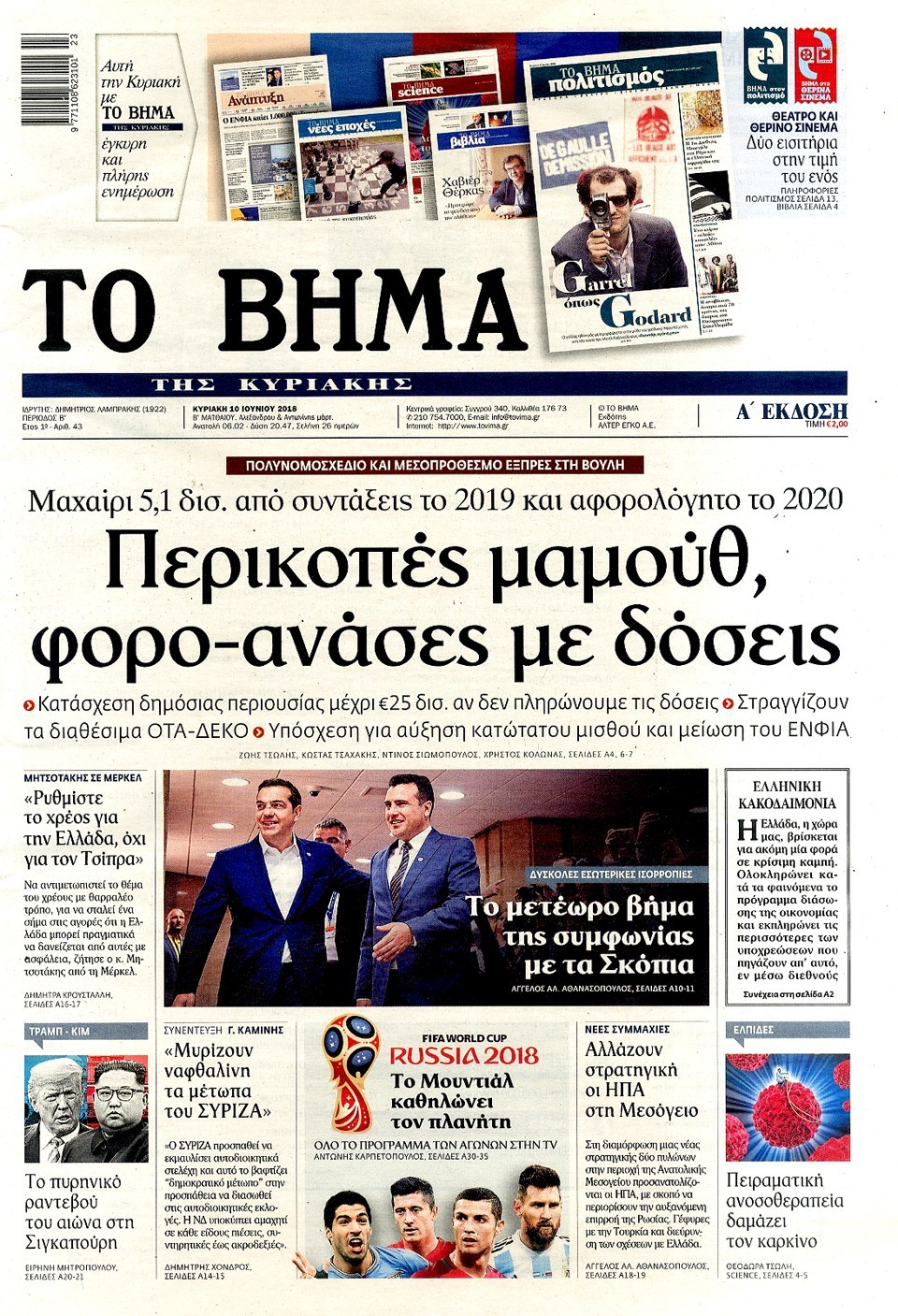 Τα πρωτοσέλιδα των Κυριακάτικων εφημερίδων 10ης Ιουνίου 2018