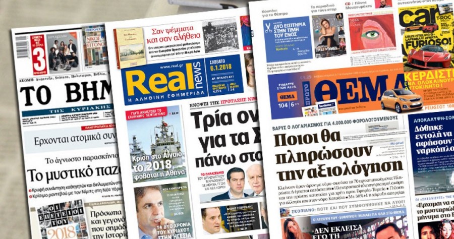 Τα πρωτοσέλιδα των Κυριακάτικων εφημερίδων (29-7-2018)