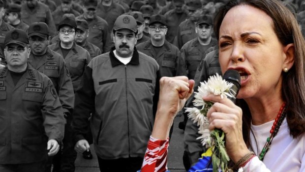 Τον σιγοντάρισε και η ηγέτιδα της βενεζουελανικής αντιπολίτευσης, Μαρία Κορίνα Ματσάδο λέγοντας «Με ή χωρίς διαπραγματεύσεις, ο Μαδούρο φεύγει».