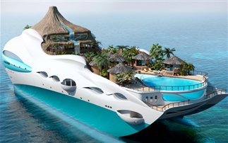 Το σκάφος μοιάζει με απομονωμένο, ηφαιστειογενές νησί, με τις τροπικές