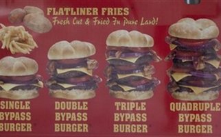Στο νοσοκομείο κατέληξε ένας πελάτης του εστιατορίου «Έμφραγμα» (Heart Attack Grill), στο Λας Βέγκας, ενώ έτρωγε ένα μπέργκερ που λεγόταν… «τριπλό bypass», 6.000 θερμίδων..