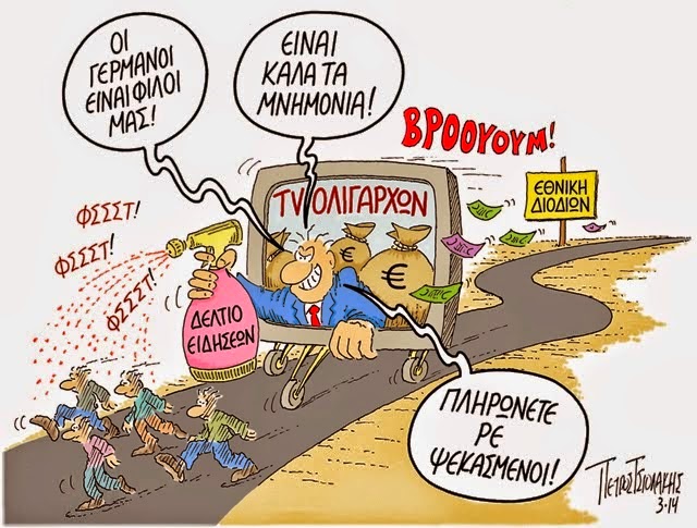 Η ίδια κατάσταση, λίγο ή πολύ, φανερά ή λιγότερο φανερά, ισχύει σε όλα τα κυρίαρχα Μέσα Μαζικής Ενημέρωσης. Ίσως γι' αυτό οι δημοσιογράφοι (όσοι απέμειναν δηλαδή στα Μέσα) δεν ντρέπονται πια να υπογράφουν φαρδιά πλατιά «εταιρικά» δελτία Τύπου τα οποία βαφτίζουν «ρεπορτάζ».Ίσως γι' αυτό τα ίδια αυτά τα Μέσα τους πληρώνουν τον ελάχιστο δυνατό μισθό ή δεν τους πληρώνουν καθόλου, γνωρίζοντας πως κανείς δεν θα τολμήσει να αντιδράσει.