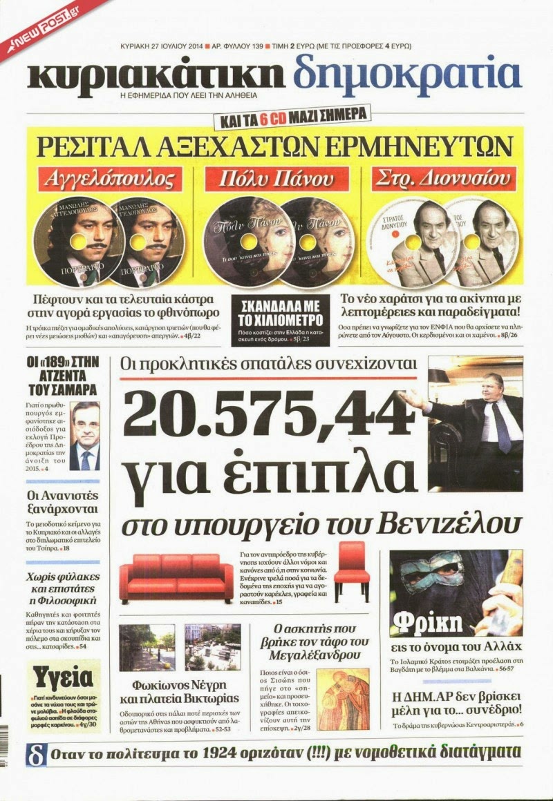ΚΥΡΙΑΚΑΤΙΚΕΣ ΕΦΗΜΕΡΙΔΕΣ ΜΕ ΧΛΙΔΗ ΠΟΛΙΤΙΚΗΣ ΚΑΙ Η ΔΗΜΟΚΡΑΤΙΑ ΠΥΟ ΧΑΝΕΤΑΙ... Ημερομηνία: