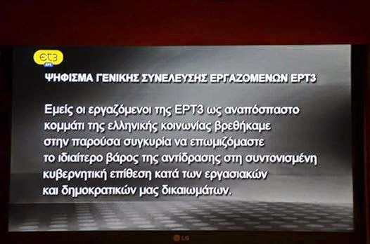 Δανειζόμαστε την ανάρτηση του Στέλιου Νικητόπουλου από την ανυπόταχτη, ελεύθερη, αυτοδιαχειριζόμενη ΕΡΤ 3 στη σελίδα του στο fb. Το "ρεπορτάζ" είναι αποκαλυπτικό. Δεν πρόκειται να υπάρξει έδρα στη Θεσσαλονίκη. Η περυσινή υπόσχεση Σαμαρά στη ΔΕΘ είχε γίνει για προφανείς πολιτικούς λόγους, της κοροϊδίας. Λίγες μέρες πριν τη ΔΕΘ η ΕΡΤ 3 συνεχίζει να εκπέμπει θυμίζοντας σε όλους πώς είναι ένας πραγματικά δημόσιος τηλεοπτικός φορέας. ΠΡΟΣ ΤΟΝ ΠΡΩΘΥΠΟΥΡΓΟ ΤΟΥ "ΜΑΥΡΟΥ" από τον Στέλιο Νικητόπουλο