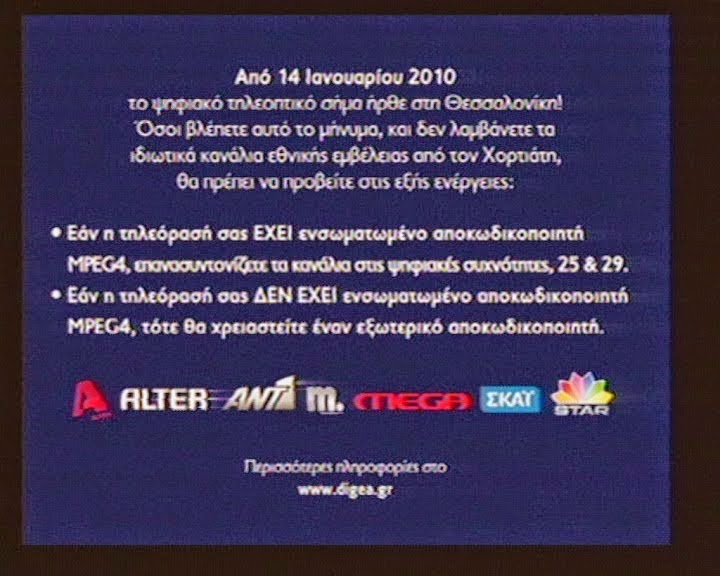 Τον Οκτώβριο του 2012 η Digea και η ΕΡΤ τότε, ζήτησαν να αλλάξει το σχέδιο του ψηφιακού χάρτη που προέβλεπε πως για να καλυφθεί η Ελλάδα με τηλεοπτικό σήμα πρέπει να στηθούν σε 275 σημεία της χώρας ψηφιακοί πομποί. Ζήτησαν, για να πληρώσουν λιγότερα, να στηθούν υποχρεωτικά 156 πομποί. Οι αρμόδιοι φυσικά το αποδέχθηκαν, γνωρίζοντας έτσι ότι δεν πρόκειται να καλυφθεί ολόκληρη τη Ελλάδα με ψηφιακό σήμα. Δεν τους ένοιαξε καθόλου· αντιθέτως, παραπλανητικά ανακοίνωναν πως η χώρα θα έχει σήμα στο 95%, ξεχνώντας να αναφέρουν πως μιλάνε για πληθυσμό και όχι για γεωγραφικά όρια. Γνωρίζοντας πως μικρά χωριά και ακριτικές περιοχές θα μείνουν χωρίς τηλεόραση, αν σβήσει η αναλογική τηλεόραση.