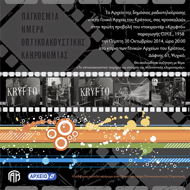 Τις προάλλες έλαβα μία πρόσκληση από τη ΝΕΡΙΤ(!), για να παραστώ σε μια εκδήλωση που συνδιοργάνωναν τα Γενικά Αρχεία του Κράτους και το ... αρχείο Δημόσιας Τηλεόρασης (ΔΤ), για την προβολή του ντοκιμαντέρ "Κρυφτό", παραγωγής ΟΗΕ, 1958, που πραγματοποιείται με την ευκαιρία της Παγκόσμιας ημέρας οπτικοακουστικής κληρονομιάς. Πάρε μέρος στο μεγαλύτερο εγχείρημα για ανεξάρτητη δημοσιογραφία. Υπάρχουν πολλοί τρόποι για να βοηθήσεις. Γιατί το δικαίωμα στην ενημέρωση είναι δικαίωμα στη δημοκρατία. Αν δεν το στηρίξεις εσύ ποιος θα το κάνει Θα επακολουθούσε συζήτηση. Σκόπευα να πάω στην εκδήλωση, κυρίως για να καταγγείλω την παραχάραξη της ιστορίας των οπτικοακουστικών αρχείων της χώρας, που συμβαίνει μετά το μαύρο της ΕΡΤ και που εκφράζεται σε όλο της το μεγαλείο από αυτό το λογότυπο "Αρχείο ΔΤ" που βλέπετε στην πρόσκληση που μου απευθύνθηκε. Το ίδιο λογότυπο εμφανίζεται και στα (ο Θεός να τα κάνει) τηλεοπτικά προγράμματα της ΝΕΡΙΤ, κάθε φορά που χρησιμοποιείται υλικό από το ιστορικό αρχείο της ΕΡΤ. Το ντοκιμαντέρ αυτό, εξ όσων γνωρίζω, είχε διατεθεί στο Εθνικό Οπτικοακουστικό Αρχείο (ΕΟΑ). Το ΕΟΑ το έκλεισαν οι μνημονιακές κυβερνήσεις πριν κλείσουν την ΕΡΤ. Τότε, το αρχείο του ΕΟΑ περιήλθε εξ ολοκλήρου στην κατοχή της ΕΡΤ (μαζί και το συγκεκριμένο ντοκιμαντέρ), η οποία κατείχε ούτως ή άλλως τη συντριπτική πλειονότητα (σε ποιότητα και ποσότητα) του ιστορικού οπτικοακουστικού αρχείου της χώρας. Σήμερα, δημοσιεύτηκε το Δελτίο Τύπου της εκδήλωσης, στις "Τυπολογίες" . Εκεί, εμφανίζεται συνδιοργανωτής της εκδήλωσης η ΝΕΡΙΤ, κύριος (ιδιοκτήτης) του ντοκιμαντέρ το αρχείο ...ΔΤ και συντονιστής της εκδήλωσης ο πρώην Διευθυντής του Μουσείου - Αρχείου της ΕΡΤ, κ. Αλεξόπουλος, νυν υπάλληλος της ΔΤ (δηλαδή του Υπουργείου Οικονομικών) και προσφάτως επιλεγείς από τον διαβόητο διαγωνισμό προσλήψεων εκτός ΑΣΕΠ, ως υπάλληλος της ΝΕΡΙΤ. Το αρχείο της ΕΡΤ (ή έστω του ΕΟΑ) δεν φαίνεται πουθενά. Υπάρχει μόνον αρχείο ...ΔΤ, δηλαδή Υπουργείο Οικονομικών (ούτε καν Πολιτισμού). Η αλήθεια είναι ότι το ιστορικό αρχείο της ΕΡΤ, μετά το μαύρο, βρέθηκε μεταξύ Σκύλας και Χάρυβδης, δηλαδή μεταξύ Γκίκα (Μάναλη) και Γκίκα (Χαρδούβελη). Η ΕΡΤ, ακόμα και όταν ενσωμάτωνε στο οπτικοακουστικό της Αρχείο αρχεία τρίτων (λόγω δωρεάς), τα αποκαλούσε πάντοτε με το όνομα του δωρητή και αρχικού συλλέκτη (π.χ. Αρχείο Πουλίδη). Ένας από τους φυσικούς αυτουργούς της νομιμοποίησης του εγκλήματος (πρώην θεσμικός προστάτης του αρχείου της ΕΡΤ) γίνεται τώρα κονφερασιέ της παραχάραξης, συντονίζοντας την εκδήλωση, χωρίς να έχει ως τώρα ψελλίσει κουβέντα για την ιστορική ΕΡΤ, που είχε κάνει το λάθος να τον διορίσει Διευθυντή του Μουσείου - Αρχείου της. Το "προσόν" αυτό πλάσαρε, μετά της προθυμίας του να συνεργαστεί με τους "δήμιους" της ΕΡΤ, για να τον διορίσουν με τη σειρά τους ενορχηστρωτή της υπεξαίρεσης του ιστορικού αρχείου της ΕΡΤ και της παραχάραξης της ονομασίας του. Οι υποκριτές του Υπουργείου Οικονομικών, της ΔΤ και της ΝΕΡΙΤ, φοβούνται ακόμα και να αναφέρουν το όνομα της ΕΡΤ και τον ιστορικό της ρόλο στη διάσωση, συντήρηση και διάδοση του αρχείου, νομίζοντας ότι έτσι ξορκίζουν το έγκλημα του μαύρου και ότι επιτυγχάνουν να σβήσουν την ΕΡΤ από την ιστορία της ραδιοτηλεόρασης της χώρας μας. Ένας ακόμη λόγος που δεν θέλουν να αναφέρουν τη λέξη ΕΡΤ, είναι και γιατί εκκρεμούν στα δικαστήρια οι αγωγές των εργα