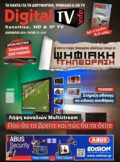 Το τελευταίο τεύχος του περιοδικού Digital TV info βρίσκεται ήδη στα περίπτερα, αφού όπως σας έχουμε ενημερώσει εδώ και ένα 6μηνο από το επόμενο τεύχος αλλάζουμε όνομα σε Ψηφιακή Τηλεόραση. Και στο νέο τεύχος διατηρούμε την υψηλή ποσότητα ύλης, διαθέτοντας συνολικά 132 σελίδες, με ποιοτικά θέματα που καταπιάνονται στο 100% με την αγορά της δορυφορικής και ψηφιακής τηλεόρασης. Αντίστοιχα διατηρείται και η αύξηση της ύλης του έτερου ήμισυ περιοδικού Security Report, που με 84 σελίδες πλούσιας ύλης, μετατρέπεται σε ένα πλήρες περιοδικό. Η ισχυρή συντακτική ομάδα του περιοδικού Ψηφιακή Τηλεόραση (Digital TV info), με 11 ενεργούς συντάκτες, τους περισσότερους από τους οποίους γνωρίζετε και προσωπικά, σας εξασφαλίζει και αυτό το μήνα, έγκυρη, έγκαιρη και κυρίως ποιοτική ενημέρωση. Πρώτα η στήλη Media News, σας μεταφέρει όλες τις τελευταίες εξελίξεις για το επικείμενο switch off της 21ης Οκτωβρίου, τις εξελίξεις με τα περιφερειακά κανάλια, το κατά πόσο είναι «βιώσιμο» το νέο χρονοδιάγραμμα των switch off, το τι θα γίνει με τα Gap Fillers και τις «Λευκές Περιοχές» και πολλά ακόμη, αποκλειστικά μέσα από το κανάλι του Digital TV info. Ο πρόσφατος διαγωνισμός που προκήρυξε η ΝΕΡΙΤ και τελικά ακυρώθηκε, άνοιξε την όρεξη για λήψη των καναλιών με την τεχνική μετάδοσης Multistream. Ο Σωτήρης Χατζηστρατής αφού πρώτα αναλύει τα τεχνικά χαρακτηριστικά της τεχνικής Multistream, στην συνέχεια περνάει στους τρόπους λήψης περιγράφοντας παράλληλα και τον απαραίτητο εξοπλισμό λήψης, ενώ στο τέλος αναφέρει και τα κανάλια που μπορείτε να κατεβάσετε. Ένα πλήρες άρθρο – οδηγός για το Multistream, με θεωρία, πράξη και επιβράβευση… την παρακολούθηση ποιοτικών καναλιών.