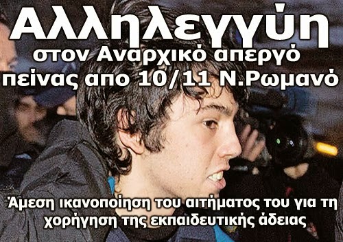 @Η ανταπόκριση των δημοσιογράφων, των πραγματικά εργαζόμενων δημοσιογράφων στα Μέσα Μαζικής Ενημέρωσης, στην ανοργάνωτη πρωτοβουλία συλλογής υπογραφών για το αυτονόητο δικαίωμα του Νίκου Ρωμανού στη ζωή και την εκπαίδευση. Το πολιτικό σύστημα για τους δικούς του λόγους εμφανίζεται να σμπρώχνει στο θάνατο τον αναρχικό Νίκο Ρωμανό. Εκατοντάδες δημοσιογράφοι, βγήκαμε από το καβούκι μας και βάλαμε το όνομά μας φωνάζοντας επίσης το αυτονόητο. Τον Νίκο Ρωμανό τον δολοφονούν. Η προπαγάνδα των κυβερνητικών φερέφωνων και διάφορων σαλτιμπάγκων της πολιτικής σκηνής πέφτει στο κενό. Ακόμη και η ΕΣΗΕΑ πιάνοντας τον παλμό της βάσης του δημοσιογραφικού κλάδου εξέδωσε ανακοίνωση. Κανείς από εμάς που μετείχαμε σε αυτή την πρωτοβουλία δεν περιμέναμε την τόση μεγάλη ανταπόκριση. Για αυτό το λόγο, οι υπογραφές θα συνεχίσουν να συγκεντρώνονται έως αύριο το βράδυ. Μέχρι στιγμής έχουν ξεπεράσει τις 400 και συνεχίζουμε... Το βράδυ της Πέμπτης 4 Δεκεμβρίου κλείνει οριστικά η λίστα και το σύνολο των συναδέλφων δημοσιογράφων θα δημοσιοποιηθεί με ανακοίνωση. Παράλληλα τα ονόματα θα σταλούν στους κρατικούς φορείς και τα συνδικαλιστικά μας όργανα. Μια απλή υπενθύμιση, μια κραυγή από τον δημοσιογραφικό κλάδο για το δικαίωμα του νεαρού αναρχικού στη ζωή και τη μόρφωση. Αύριο Πέμπτη θα σταλούν τα νέα ονόματα και το πρωί της Παρασκευής η οριστική λίστα υπογραφών. @Το Διοικητικό Συμβούλιο της ΕΣΗΕΑ με αφορμή τη στάση της Κυβέρνησης στην υπόθεση Ρωμανού, οφείλει να επισημάνει προς πάσα κατεύθυνση, ότι το δικαίωμα στην παιδεία είναι καθολικό και αδιαπραγμάτευτο. Με δεδομένη την αυτονόητη θέση αρχής και το συνταγματικά κατοχυρωμένο δικαίωμα των πολιτών στη μόρφωση, η δημοσιογραφική κοινότητα, όπως και η κοινή γνώμη θεωρούν ότι έστω και την τελευταία στιγμή θα βρισκόταν λύση στο αδιέξοδο, που δημιούργησε η στάση της Πολιτείας απέναντι στο δίκαιο αίτημα του κρατούμενου Νίκου Ρωμανού, να μπορεί απρόσκοπτα να παρακολουθεί τα μαθήματα της σχολής του στο ΤΕΙ Αθήνας. Η απόφαση, όμως, του Δικαστικού Συμβουλίου θέτει σε κίνδυνο τη ζωή του Νίκου Ρωμανού, ο οποίος συνεχίζει για 24η ημέρα την απεργία πείνας και η κατάσταση της υγείας του επιδεινώνεται δραματικά. Η ΕΣΗΕΑ υπογραμμίζει ότι το δικαίωμα στη μόρφωση θα πρέπει να ασκείται ελεύθερα και να το απολαμβάνουν όλοι ανεξάρτητα από την όποια δικαστική διεκπεραίωση της υπόθεσης τους. Η Πολιτεία οφείλει να λάβει όλα τα απαραίτητα μέτρα για την άσκηση του αυτονόητου δικαιώματος και η κυβερνητική εξουσία να αντιληφθεί ότι η αξία της ανθρώπινης ζωής είναι υπέρτερη όλων. ΤΟ ΔΙΟΙΚΗΤΙΚΟ ΣΥΜΒΟΥΛΙΟ