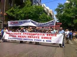 Από την Κατάληψη ΕΣΗΕΑΜε απολύσεις εργαζόμενων των newsbeast.gr και news.gr ξεκίνησε η Τετάρτη στον όμιλο του Χρήστου Κοπελούζου. Οι απολύσεις ανακοινώθηκαν στους δημοσιογράφους των ειδησεογραφικών σάιτ και τους εργαζόμενους σε άλλες επιχειρηματικές δραστηριότητες του ομίλου από τον διευθυντή Βίκτωρα Μοντζέλι. Από τις τρεις πρωινές απολύσεις, ο αριθμός ανήλθε το μεσημέρι στις οκτώ και, κατά τις τελευταίες πληροφορίες, πλέον φθάνει τις δώδεκα! Στην Prime Media επικρατεί αναβρασμός και ανησυχία, με τους εργαζόμενους να φοβούνται συνέχιση του μπαράζ απολύσεων. (Θα ακολουθήσει νεότερη ενημέρωση). Ενδεικτικό της στάσης που έχουν επιλέξει να κρατούν τα “κεφάλια” τηςPrime Media είναι το γεγονός ότι στην τελευταία απεργία του κλάδου των ΜΜΕ (26 Νοεμβρίου) ο διευθυντής του ομίλου Βίκτωρας Μοντζέλι δεν επέτρεψε την είσοδο και την επαφή με τους εργαζόμενους (που εργάζονταν κανονικά) σε κλιμάκιο του Μεικτού Συμβουλίου της ΕΣΗΕΑ. Αυτές οι πρακτικές δεν αποτελούν εξαίρεση στον κανόνα, καθώς στα περισσότερα ειδησεογραφικά σάιτς υπάρχουν ανασφάλιστοι και με πενιχρούς μισθούς εργαζόμενοι. Αυτό που άπαντες συνδέει, ωστόσο, είναι ότι κανένα σωματείο δεν τους αναγνωρίζει και παραμένουν ακάλυπτοι. Για αυτό το λόγο είναι απαραίτητη η οργάνωση και η συλλογική αντίδραση απέναντι στα αφεντικά του κλάδου. @Ανακοίνωση της Συσπείρωσης Δημοσιογράφων – Δούρειος Τύπος για τα 100 χρόνια της ΕΣΗΕΑ