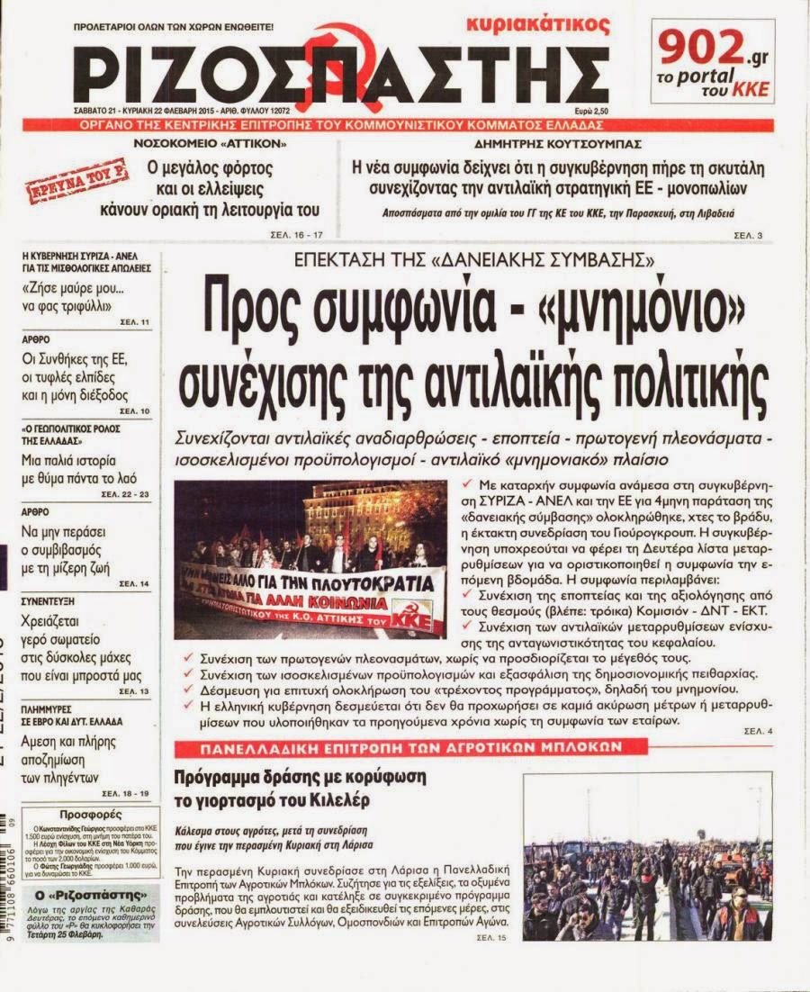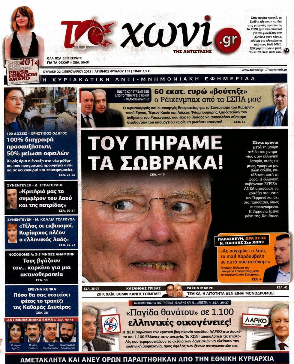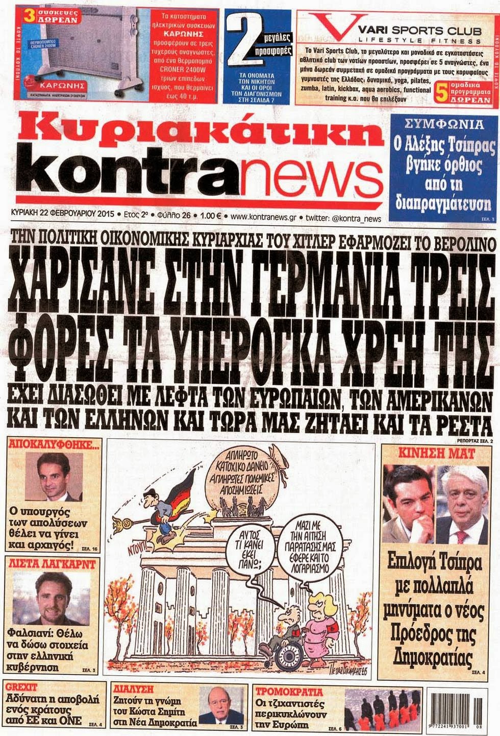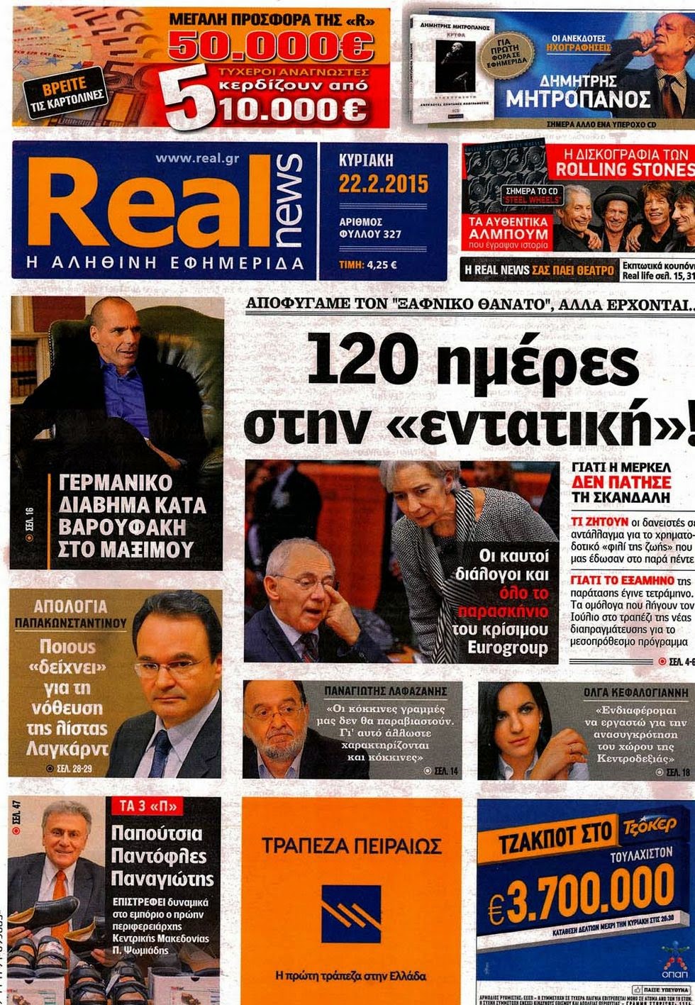Τα πρωτοσέλιδα των Κυριακάτικων 22/2/2015 πολτικών εφημερίδων