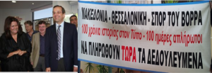 Αυτό που είπε στους συνδικαλιστικούς εκπροσώπους των εργαζομένων είναι… η ανάγκη αυτοί να πληρώσουν ακόμη μια φορά την κακοδιαχείριση των προηγούμενων χρόνων, τα λάθη, αλλά και τα όποια συμφέροντα ιδιοκτήτη και εκδότριας. Την απερχόμενη τριετία 2011-14 οι εργαζόμενοι εξαναγκάστηκαν να υπογράψουν ατομικές συμβάσεις με μείωση μισθών κατά 30% (οι 57 από τους 63 σημερινούς εργαζόμενους στη Μακεδονία, οι 27 στα Σπορ του Βορρά και οι 16 τεχνικοί της νεοσύστατης εκτυπωτικής εταιρείας Βορειοελλαδικές εκδόσεις μαζί με την άλλη εφημερίδα της πόλης τον Αγγελιοφόρο), που λήγουν τέλος της χρονιάς και πρέπει να καταβληθούν τα οφειλόμενα 3.5 μηνών. Με το πέρας αυτών των ατομικών συμβάσεων στις 31/12/2014 οι εργαζόμενοι επανέρχονται στις Συλλογική Σύμβαση Εργασίας 2008.