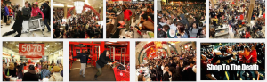 Ούτε και κάνει κάποιες αναφορές στις χαοτικές καταστάσεις που διαμορφώνονται μέσα στα καταστήματα (στο διαδίκτυο υπάρχουν άπειρα σχετικά videos) ή ακόμα και για τους θανάτους και τους τραυματισμούς που έχουν συντελεστεί και σχετίζονται με αυτή (7 και 98 αντίστοιχα τα τελευταία χρόνια στις ΗΠΑ – βλ. http://.com/). Οι καταναλωτές, που μπορεί να περιμένουν και ώρες έξω από τα μαγαζιά για να προλάβουν τις προσφορές, καταλήγουν να ποδοπατιούνται και να πλακώνονται κυριολεκτικά μεταξύ τους. Και βέβαια η μανία τους παίρνει σβάρνα και τους εργαζόμενους, που πέρα από τον υψηλό και εντατικοποιημένο φόρτο εργασίας που τους επιβάλλεται στο πλαίσιο της “black Friday”, έχουν να εξυπηρετήσουν-αντιμετωπίσουν τους λυσσασμένους καταναλωτές. Αλλά ουσιαστικά και τις σωματικές επιθέσεις τους στο πέρασμα τους από τους διαδρόμους στην αναζήτηση των προσφορών. Μάλιστα, το 2008 ένας 34χρονος εργάτης της Wal-Mart έχασε τη ζωή του, όταν ποδοπατήθηκε κυριολεκτικά από 200 περίπου καταναλωτές.