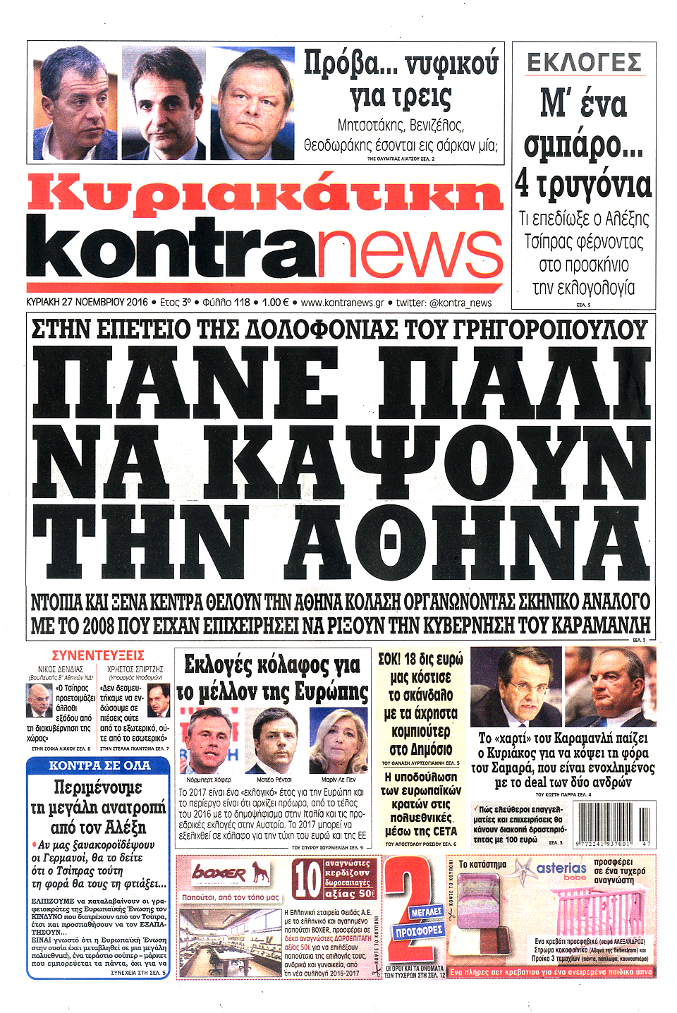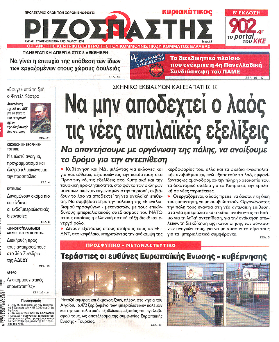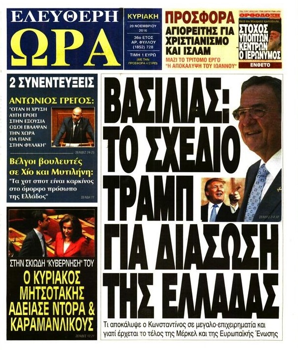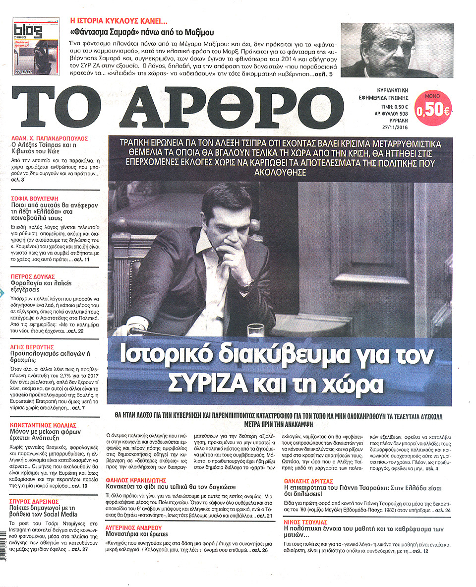 Τα πρωτοσέλιδα των Κυριακάτικων εφημερίδων 27 Νοεμβρίου 2016
