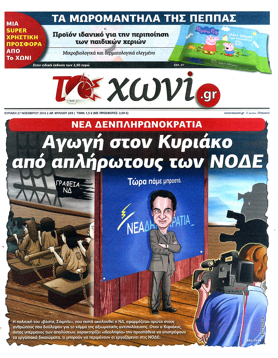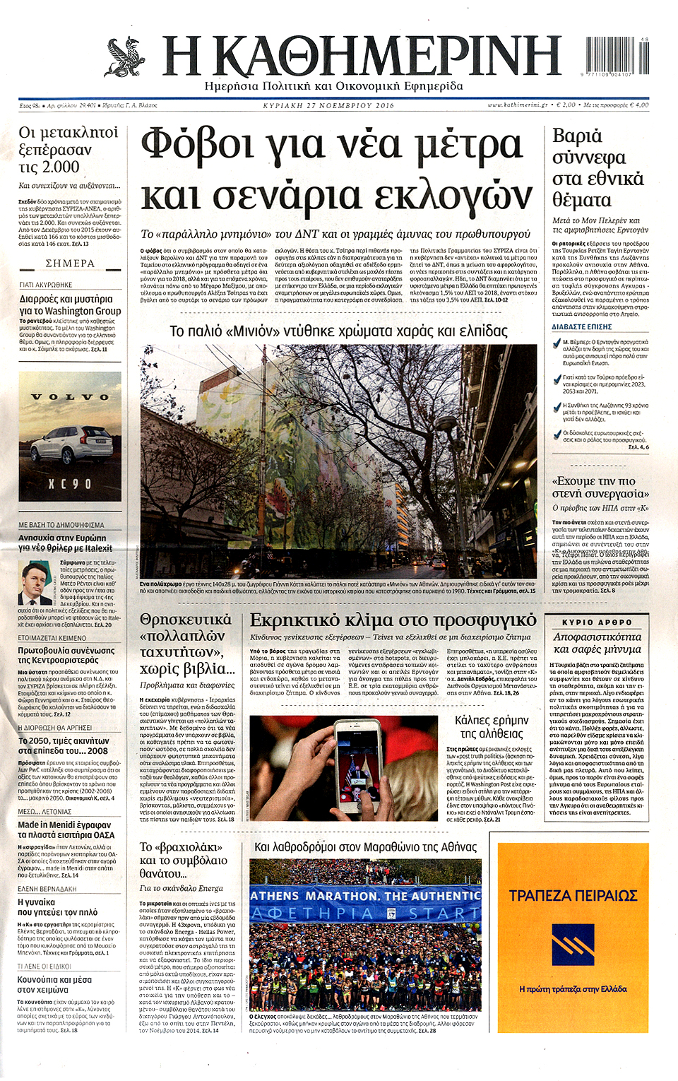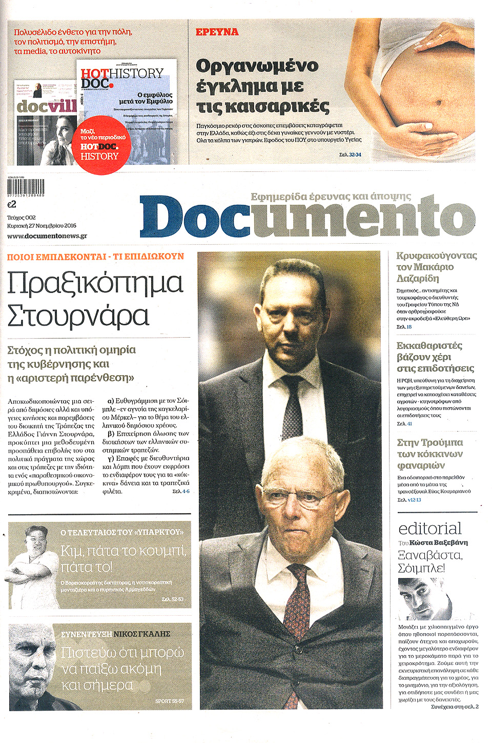 Τα πρωτοσέλιδα των Κυριακάτικων εφημερίδων 27 Νοεμβρίου 2016