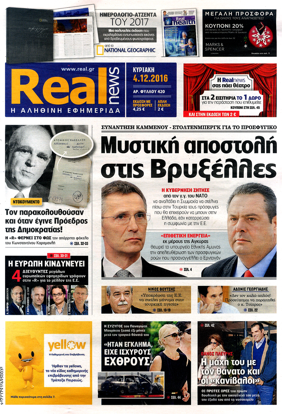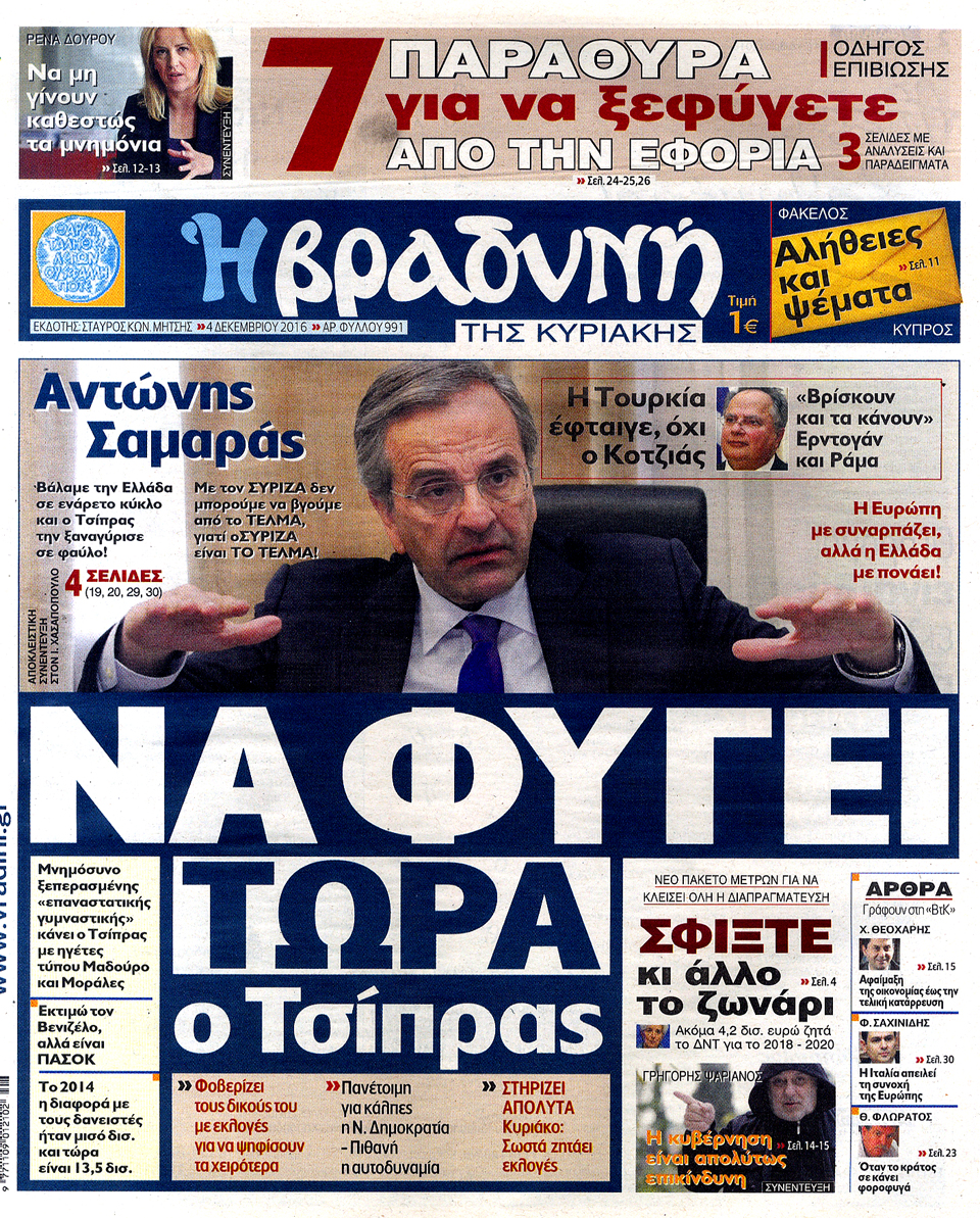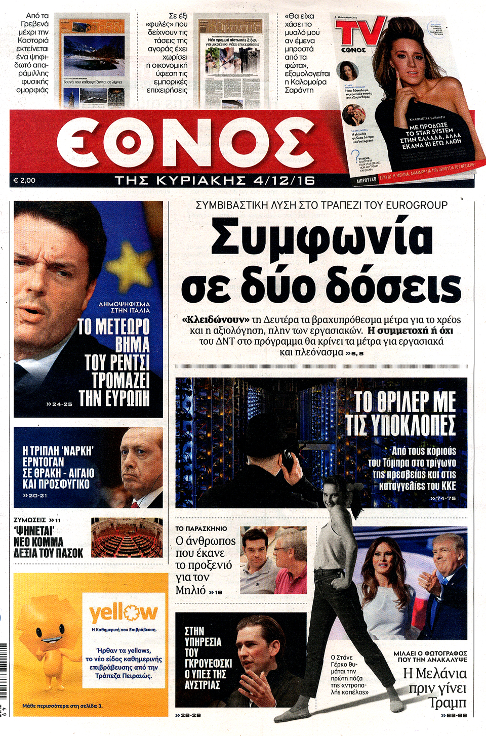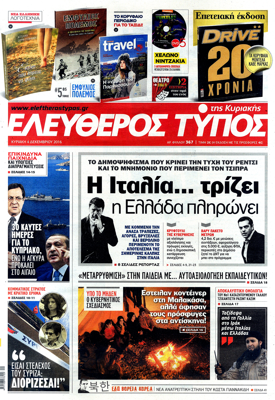 Τα καυτά πρωτοσέλιδα Κυριακάτικων εφημερίδων 4 Δεκεμβρίου 2016