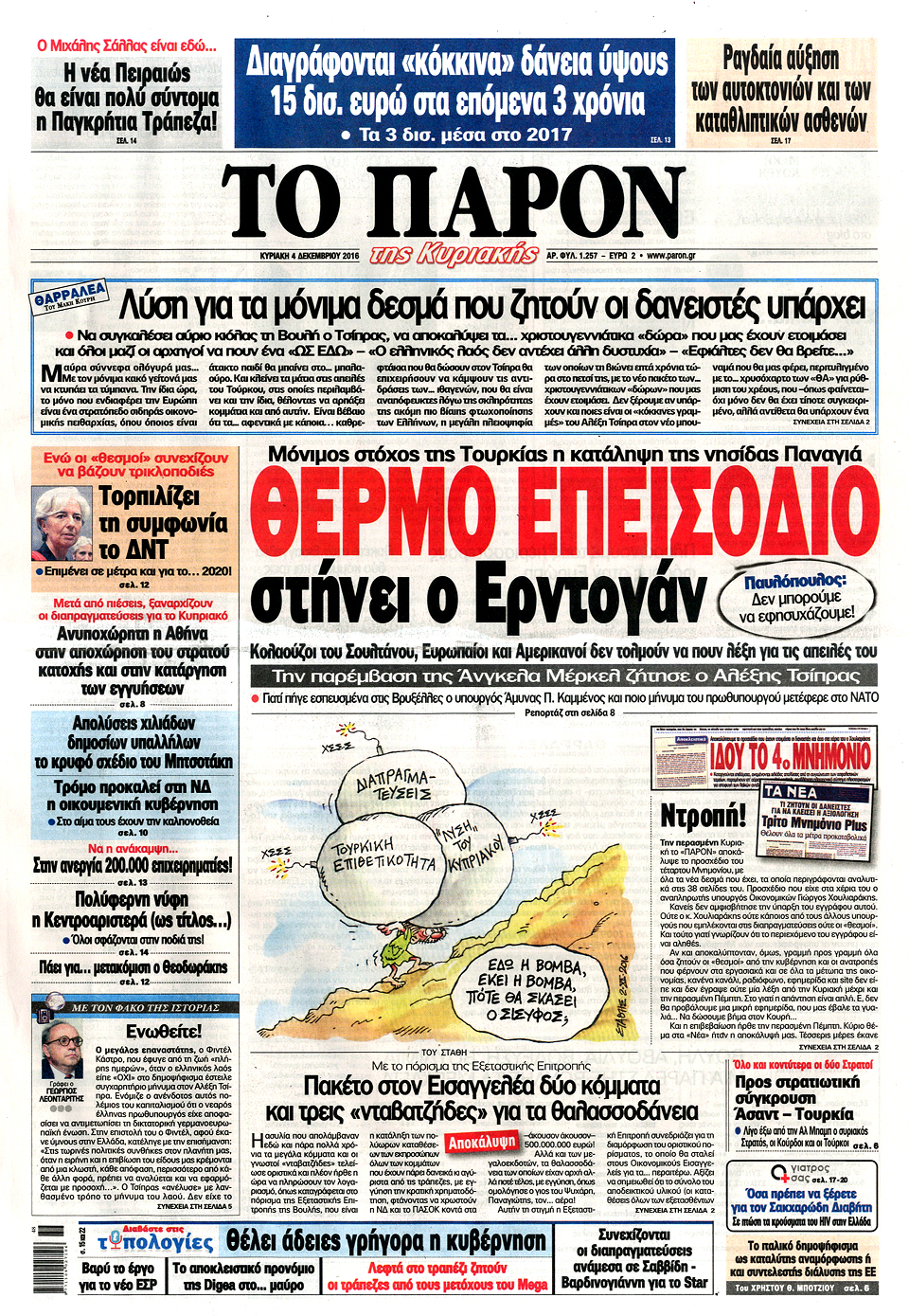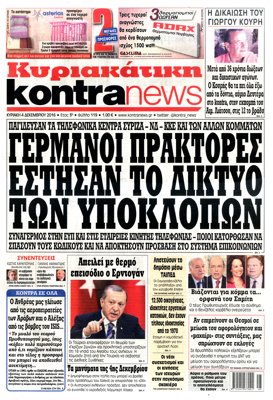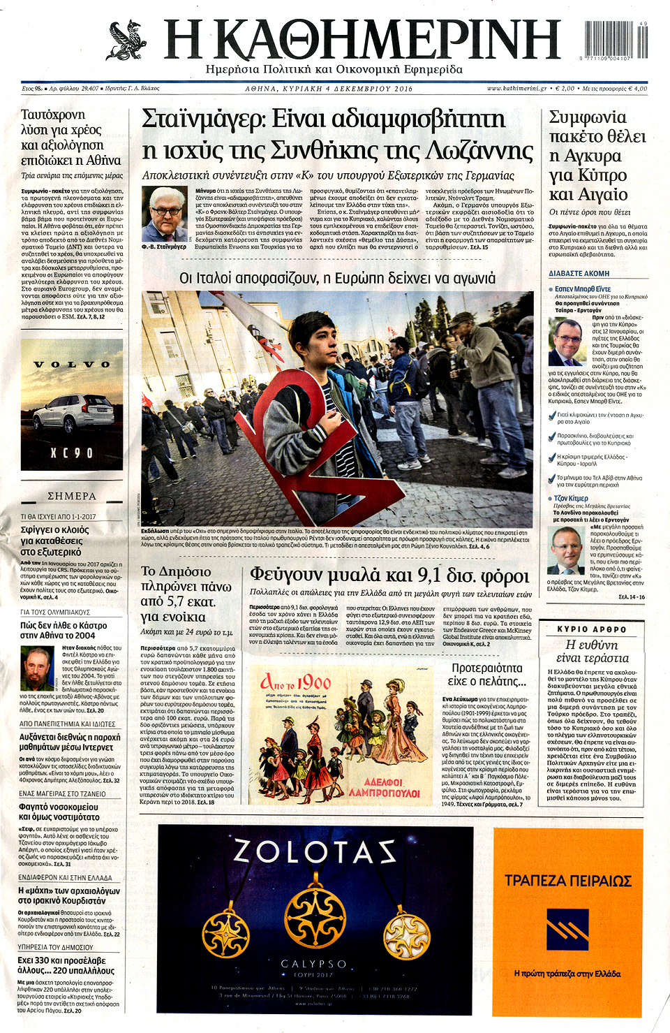 Τα καυτά πρωτοσέλιδα Κυριακάτικων εφημερίδων 4 Δεκεμβρίου 2016