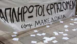 Διαβάζουμε την ανάρτηση του “Ασύνταχτου Τύπου” «ΜΑΚΕΔΟΝΙΑ» Τρομοκράτηση και εκδικητικότητα της εργοδοσίας, η οποία χρωστάει στους εργαζόμενους 11 μισθούς και απολύει 2 δημοσιογράφους! Η επιχείρηση της εφημερίδας «Μακεδονία» δεν λέει να αποδεχθεί τις στοιχειώδεις υποχρεώσεις της προς τους εργαζόμενους, στους οποίους τα οφειλόμενα φθάνουν σήμερα τα 11 μηνιάτικα! Μάλιστα, πριν λίγες μέρες ο αδελφός του μεγαλομετόχου Τζον Ρήγα, Θόδωρος, δεν μπόρεσε να δεσμευτεί στις συνδικαλιστικές ενώσεις ούτε καν για την καταβολή ενός μισθού, πλέον του ποσού των 1,70% μισθών που είχε γνωστοποιήσει η νομική εκπρόσωπος (πραγματική εκδότης) Β. Σουλοπούλου, με σύμβουλο τον Χασδάϊ Καπόν, ότι θα καταβληθούν μέχρι τέλος Δεκεμβρίου. Οι εργαζόμενοι είναι ταλαιπωρημένοι, αλλά και εξοργισμένοι, διατυπώνοντας διάφορες σκέψεις γιαδυναμικές αντιδράσεις.