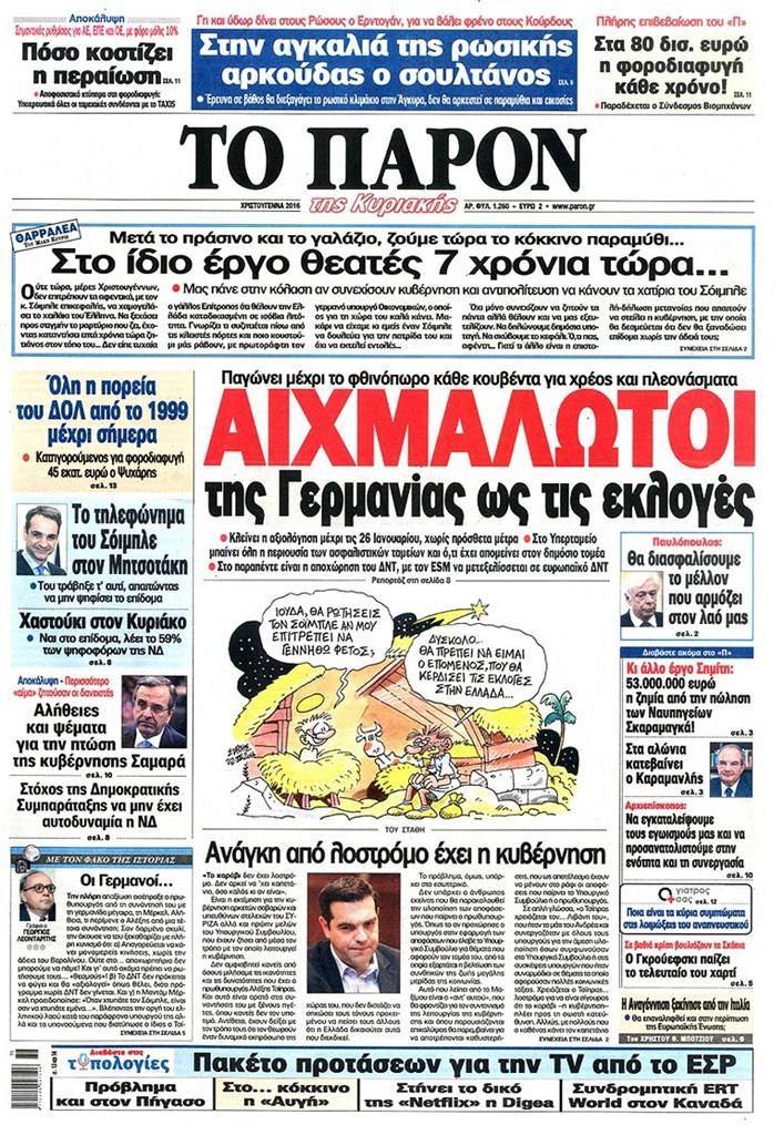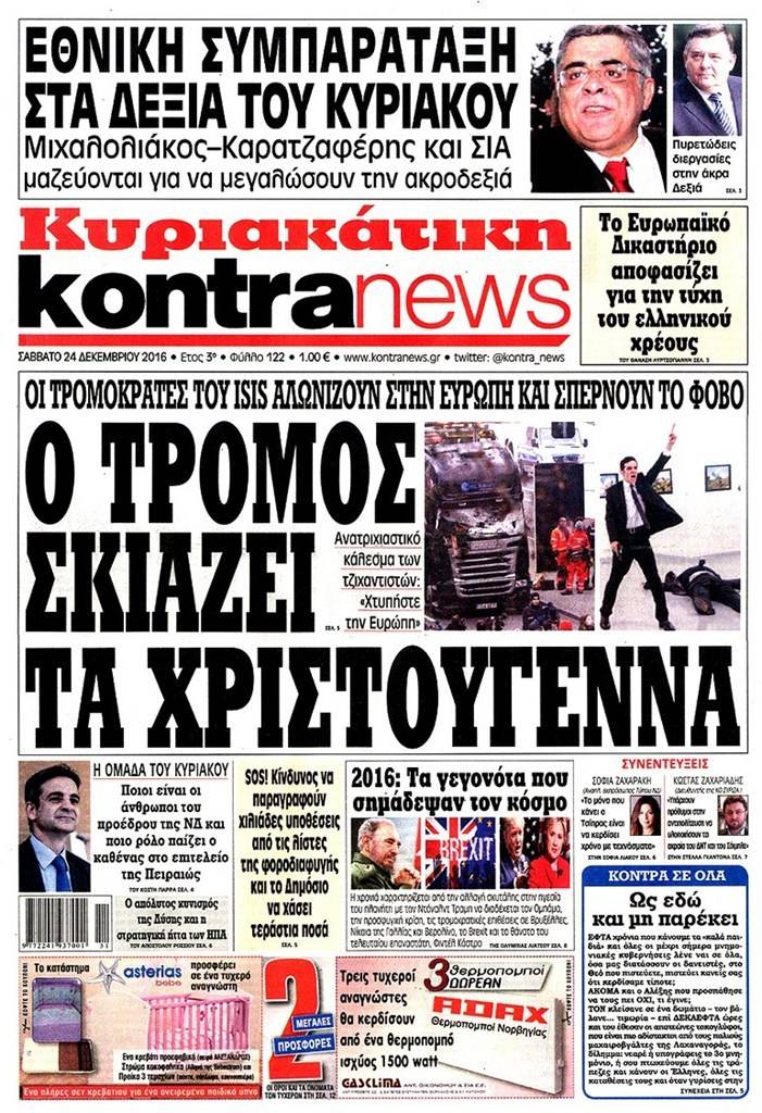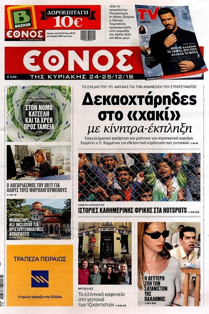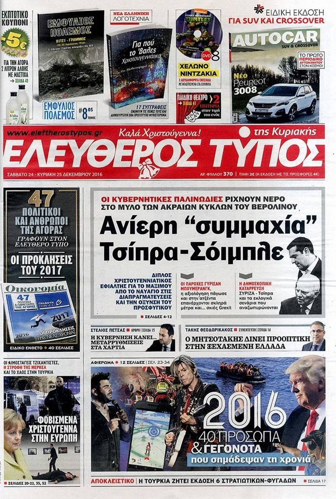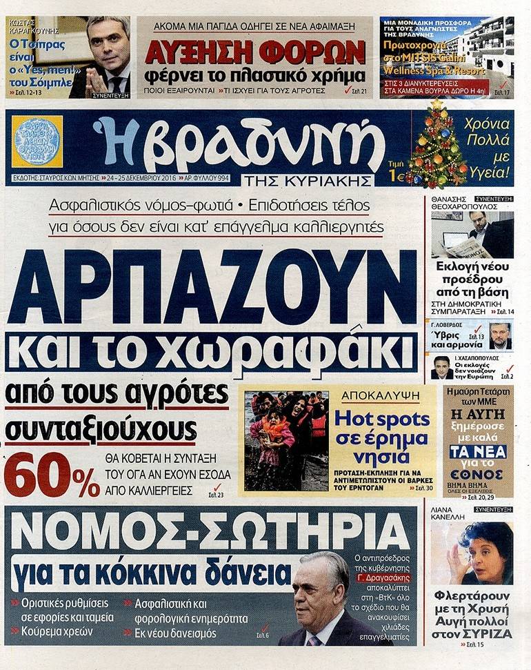 Τα πρωτοσέλιδα των Κυριακάτικων εφημερίδων 25 Δεκεμβρίου 2016