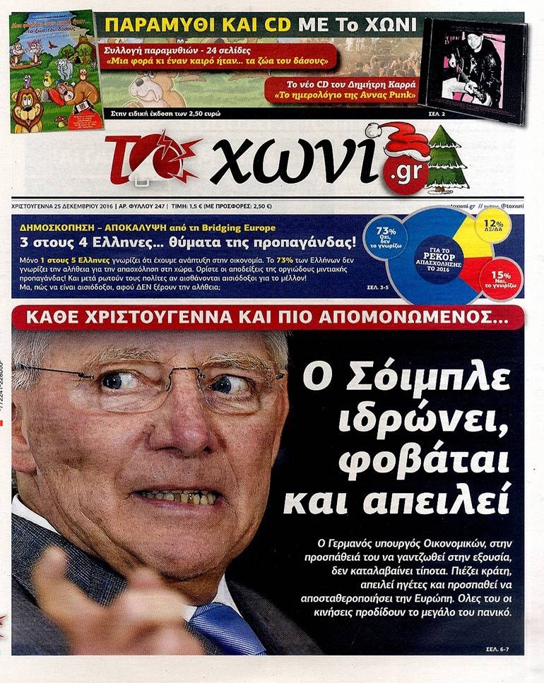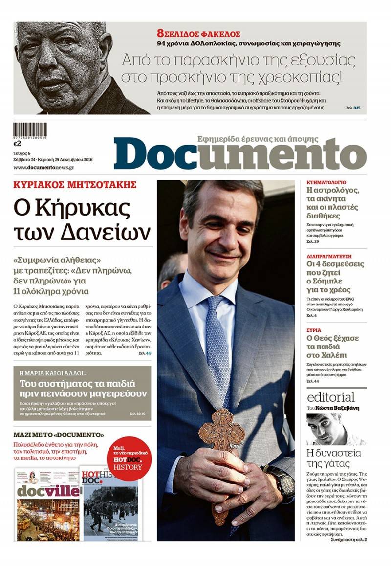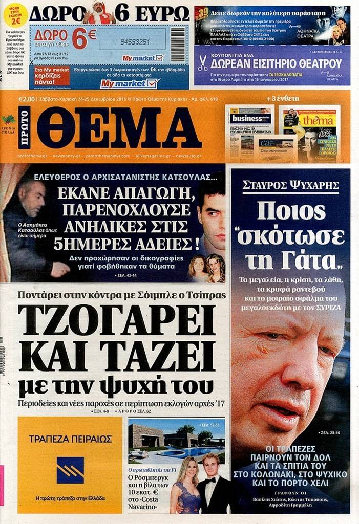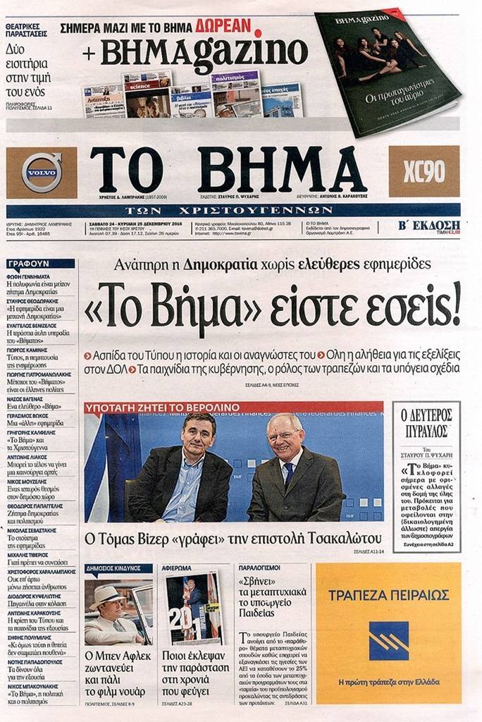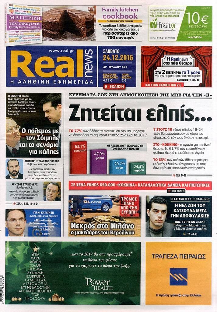 Τα πρωτοσέλιδα των Κυριακάτικων εφημερίδων 25 Δεκεμβρίου 2016