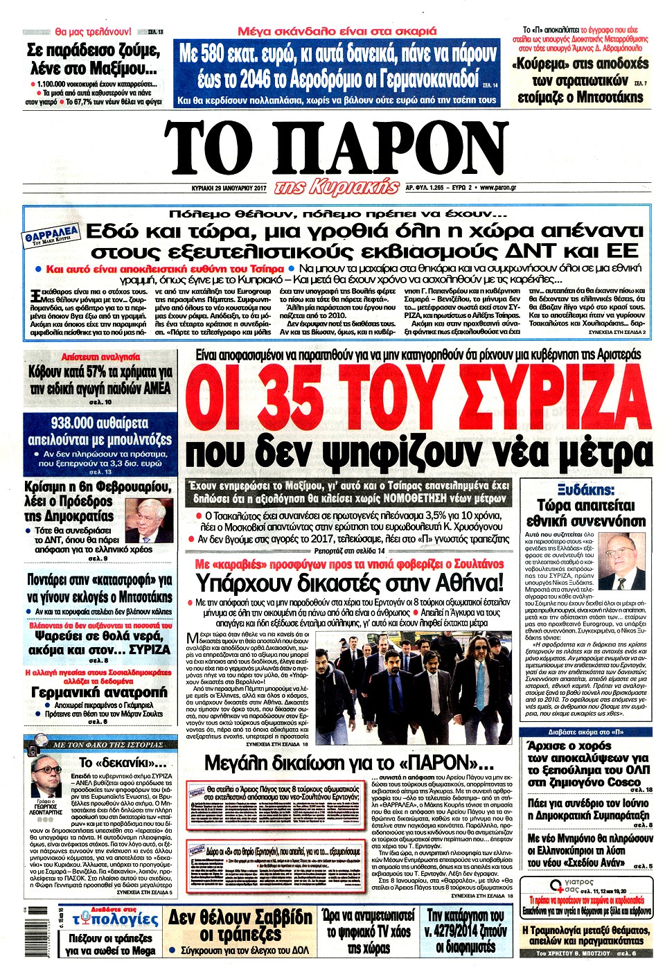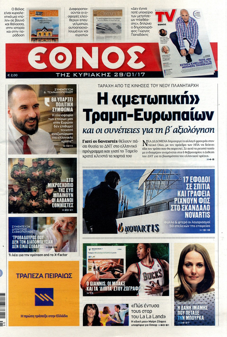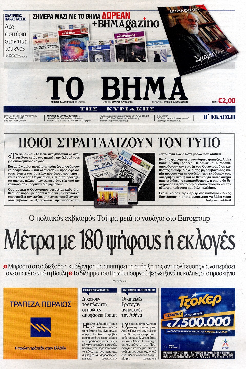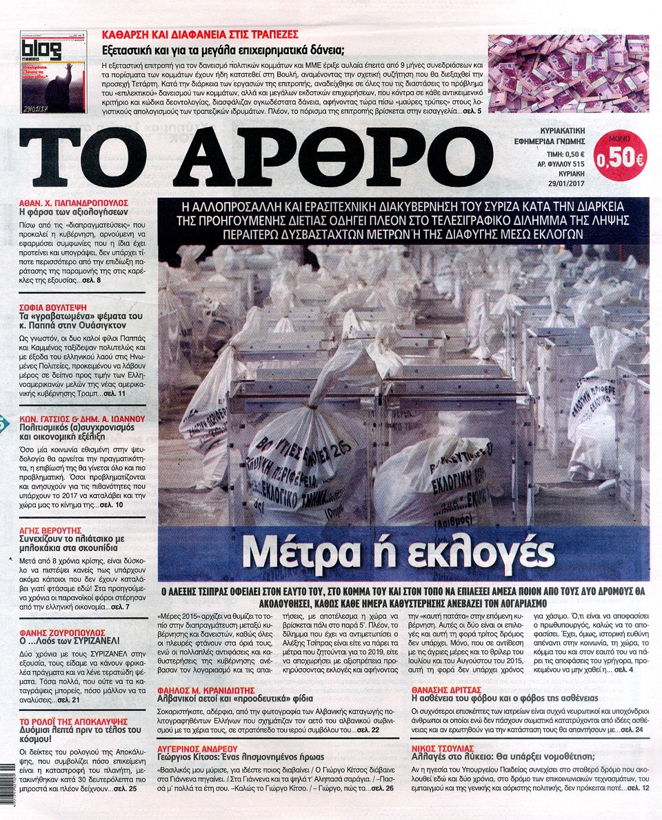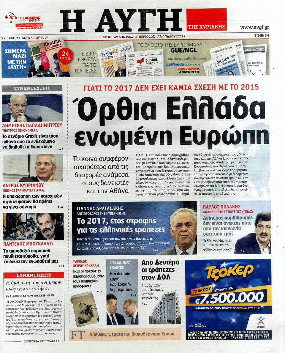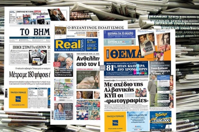 Τα πρωτοσέλιδα των Κυριακάτικων εφημερίδων 29 Ιανουαρίου 2017