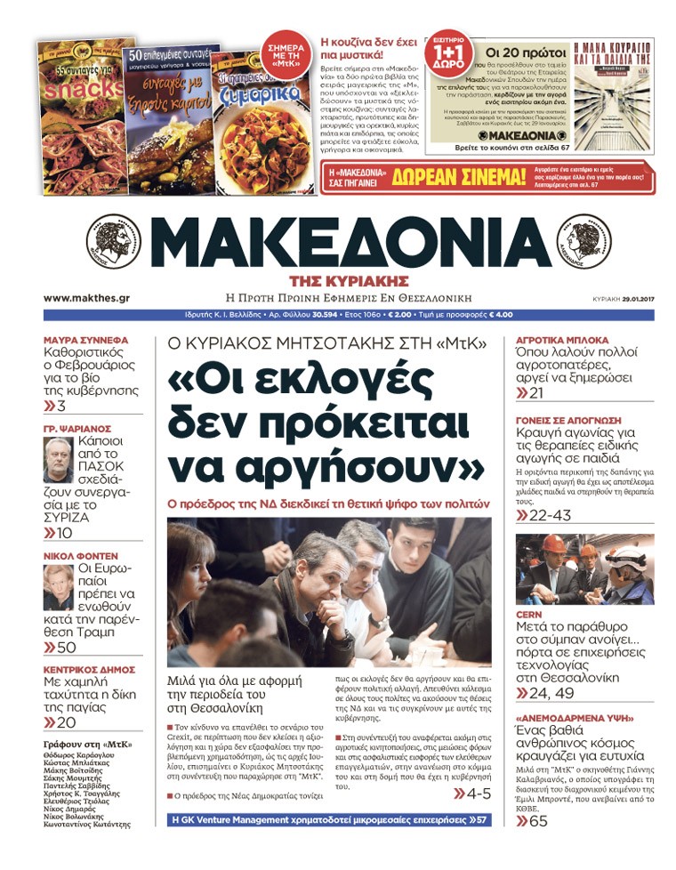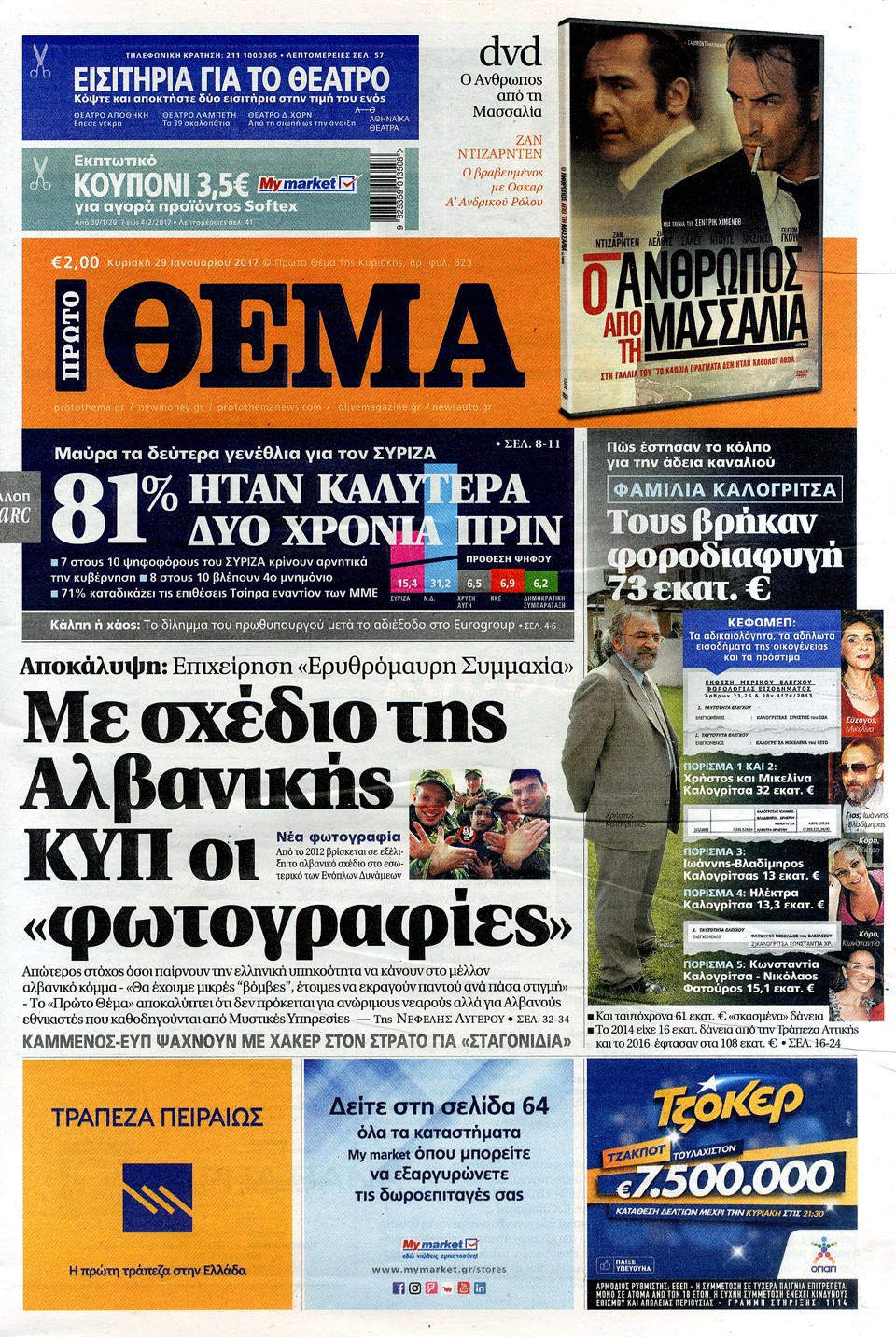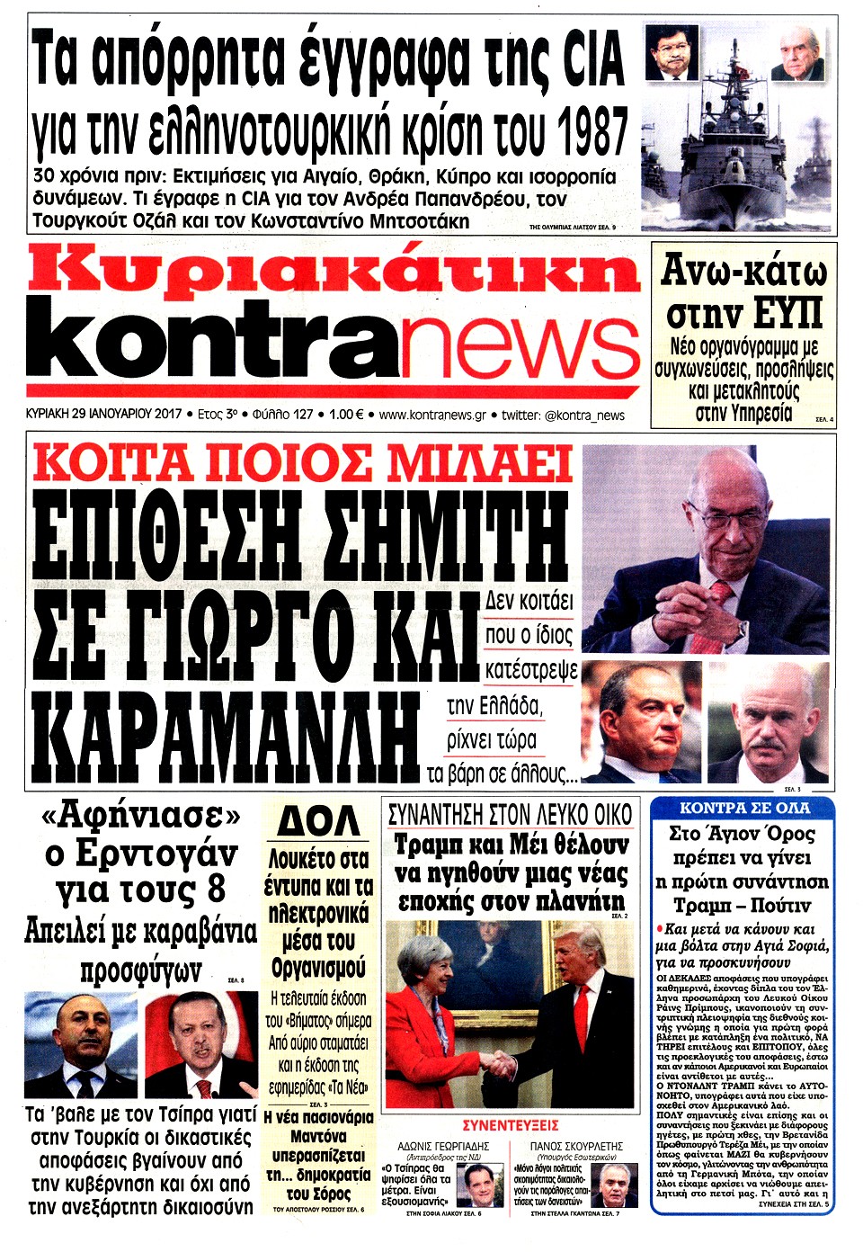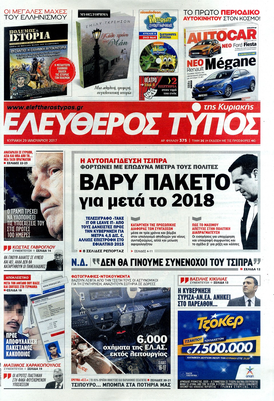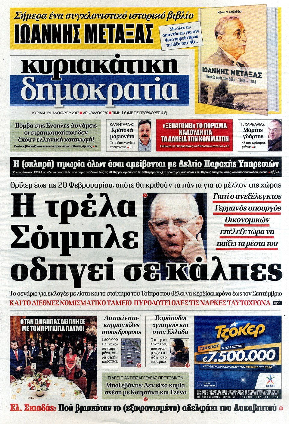 Τα πρωτοσέλιδα των Κυριακάτικων εφημερίδων 29 Ιανουαρίου 2017