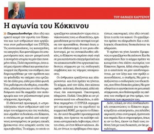 Το σημερινό άρθρο του Θανάση Καρτερού στην Αυγή ήταν μια δυσάρεστη έκπληξη για πολλούς. Όχι τόσο επειδή κατηγορεί ευθέως τους εργαζόμενους στο ραδιοφωνικό σταθμό “Στο Κόκκινο”-αυτό το κάνουν καιρό τώρα όλοι οι “κομματικοί” για να αντιμετωπίσουν το δίκαιο αίτημα της πληρωμής των δεδουλευμένων. Ήταν δυσάρεστη έκπληξη επειδή ο Θανάσης Καρτερός τυγχάνει να ήταν ο πρώτος διευθυντής του ραδιοφωνικού σταθμού το οποίο σήμερα το κόμμα του ΣΥΡΙΖΑ έχει αφήσει στην τύχη του την ώρα που η διοίκηση απαιτεί να είναι ο “κομματικός σταθμός”! Αυτά γράφει και ο Θ. Καρτερός και επειδή είναι παλιός στο διοικείν τα ΜΜΕ, πίσω από τις γραμμές κατανοούμε πως κάποιοι φλερτάρουν με λύση αλα 902, να λειτουργεί δηλαδή Το Κόκκινο με κομματικούς χωρίς λεφτά! Το άρθρο του Θ. Καρτερού έχει προκαλέσει μεγάλη οργή στους εργαζόμενους που συνεχίζουν να λειτουργούν το ραδιόφωνο απλήρωτοι επί 2,5 μήνες και κάτω από οδηγίες για συγκεκριμένη κομματική, μνημονιακή πολιτική γραμμή. Το επιχείρημα ότι το κόμμα δεν έχει λεφτά προκαλεί ειρωνικά μειδιαμάτα. Δηλαδή το κόμμα είχε λεφτά όταν ήταν στον αντιπολίτευση με 3,5% ποσοστό και δεν έχει τώρα που είναι στην κυβέρνηση; Το ζήτημα είναι πως ο ΣΥΡΙΖΑ δεν ξέρει τι να κάνει με τα κομματικά του ΜΜΕ. Υπάρχει η άποψη πολλών κυβερνητικών ότι δεν χρειάζεται η “Αυγή”. Και την ίδια ώρα αυτοί που λένε πως χρειάζεται δεν κάνουν απολύτως τίποτε για να αποφασισθεί ένα σχέδιο για την εφημερίδα. Οι “κομματικοί” σε εφημερίδα και ραδιόφωνο εμφανίζονται ως “εργοδοτικοί”, κατηγορούν κι αυτοί μόνο τους εργαζόμενους, υποστηρίζουν πως οι κινητοποιήσεις στρέφονται κατά του κόμματος! Ξεχνώντας να πουν λέξη για τους απλήρωτους μισθούς. Χαρακτηριστικό είναι ότι η διοίκηση του σταθμού “Στο Κόκκινο” απαγόρευσε να αναρτηθεί στην ιστοσελίδα του σταθμού το κείμενο των εργαζομένων! Σήμερα πραγματοποιείται γενική συνέλευση των εργαζομένων στην “Αυγή” για το θέμα της καθυστέρησης της μισθοδοσίας, για αύριο Τρίτη είναι προγραμματισμένη 24ωρη απεργία. Το επιχείρημα και στην εφημερίδα, αντί άλλης απάντησης, είναι ότι η απεργία είναι πολιτική! Στο μεταξύ οι εργαζόμενοι της “Αυγής” έχουν προσφύγει στο ΣΕΠΕ, το ίδιο έπραξαν και τα σωματεία για τους εργαζόμενους στο ραδιόφωνο.