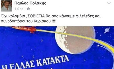 Το «μήνυμα» συνοδευότανε και από μία φωτογραφία εμπνευσμένη από την εκτόξευση του ελληνικού δορυφόρου στο διάστημα. Μεγαλεία!
