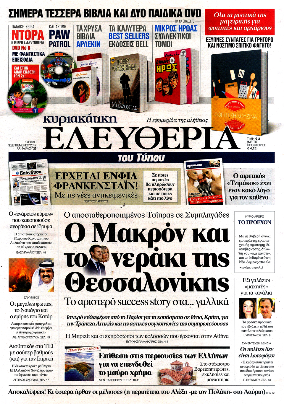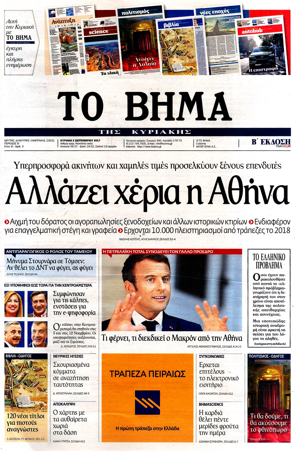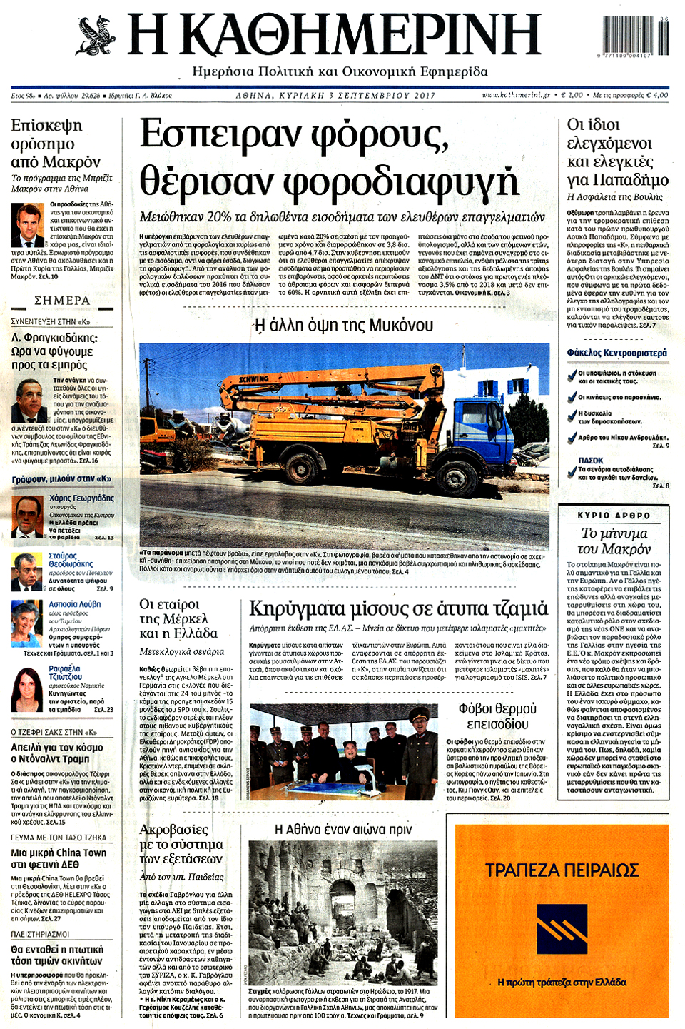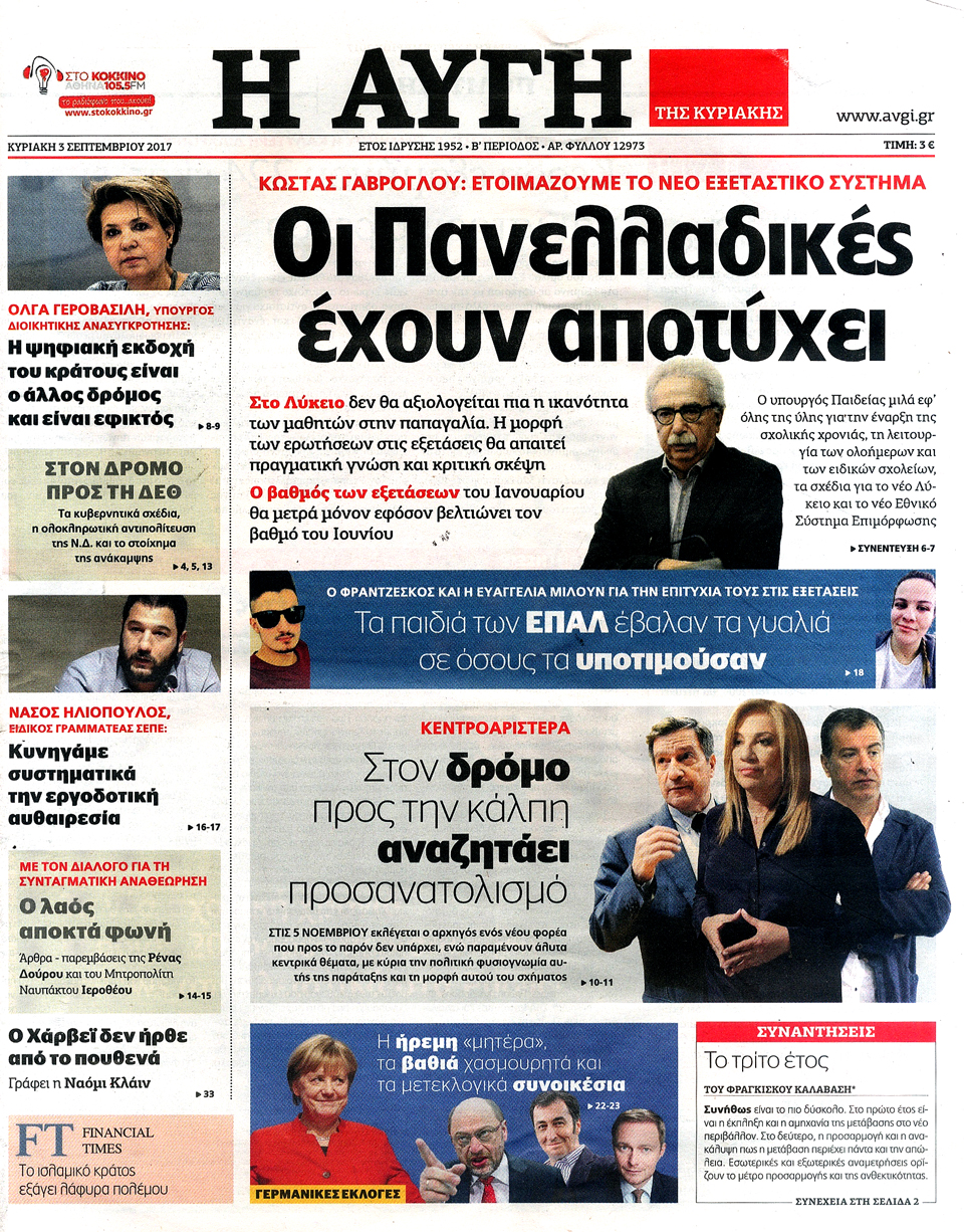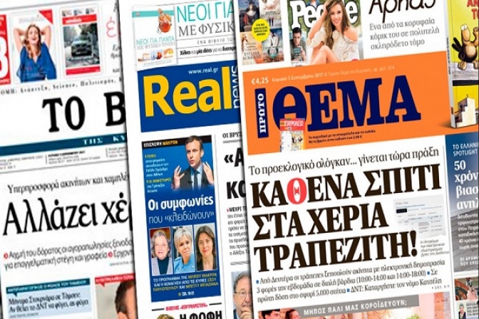 Τα πρωτοσέλιδα των Κυριακάτικων εφημερίδων 3 Σεπτεμβρίου 2017