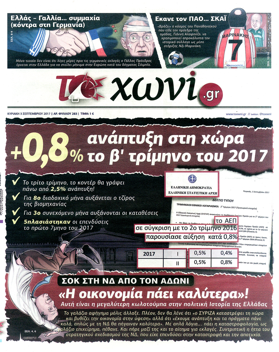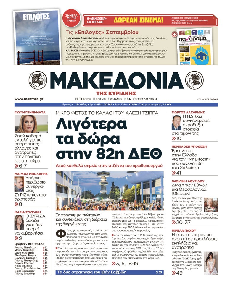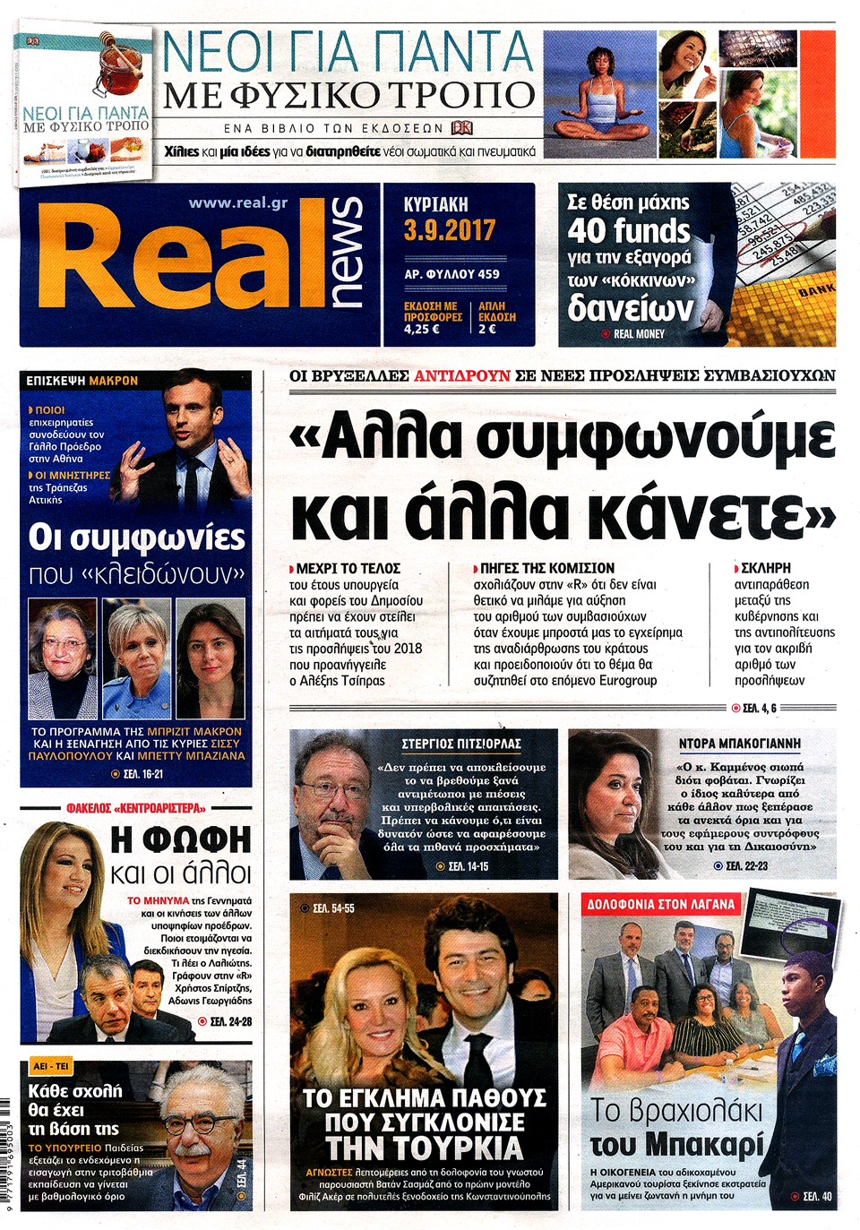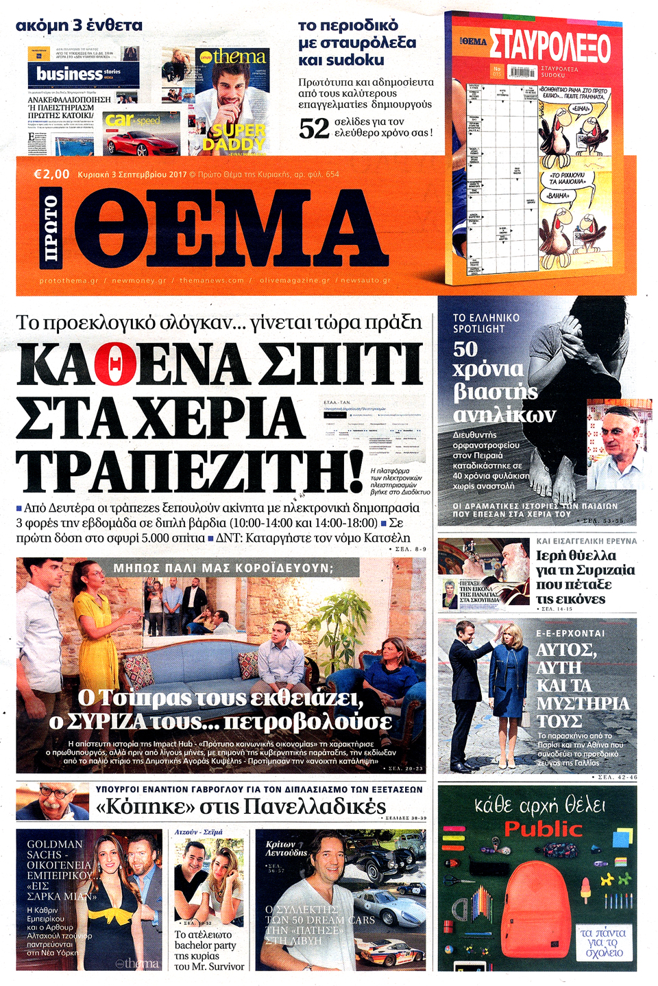 Τα πρωτοσέλιδα των Κυριακάτικων εφημερίδων 3 Σεπτεμβρίου 2017