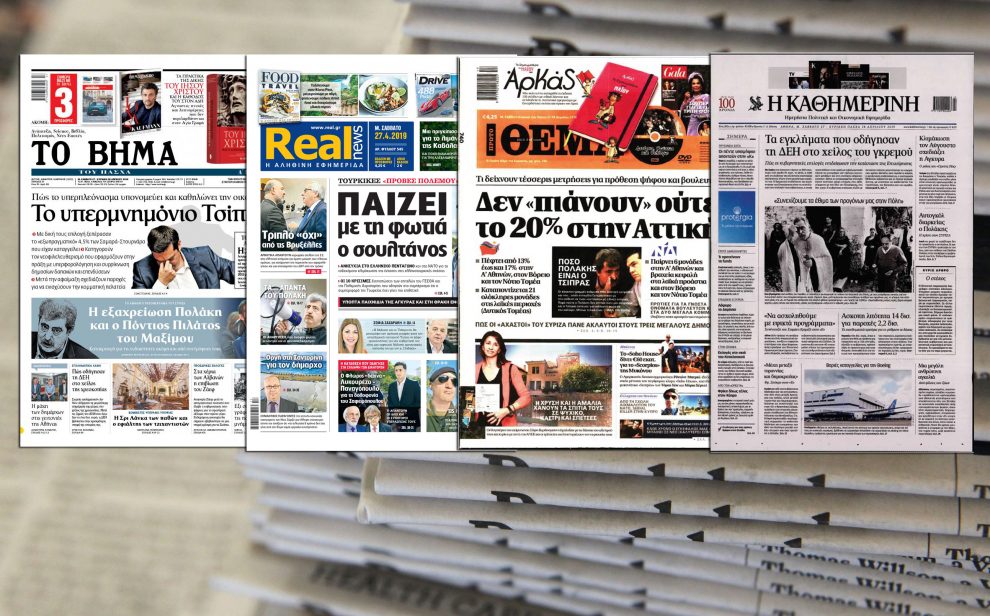 Τα πρωτοσέλιδα των Κυριακάτικων εφημερίδων (8-9-2019) Ημερομηνία: