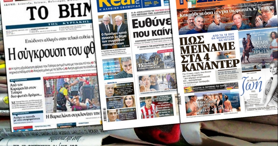 αβάστε τα πρωτοσέλιδα των εφημερίδων της Κυριακής 24-5-2020