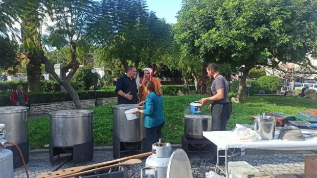 Οι παραγωγοί, φορώντας τα χοντρά μπουφάν τους, μοιράζονται το φαγητό σε πλαστικά κεσεδάκια, τσουγκρίζουν ποτηράκια με τσίπουρο για να ζεσταθούν, ανταλλάσσουν ευχές και συζητούν για την επόμενη μέρα.