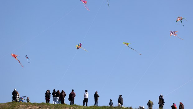 Κυκλοφοριακή συμφόρηση καταγράφεται το μεσημέρι της Καθαράς Δευτέρας, 23 Φεβρουαρίου, στο κέντρο της Αθήνας.
