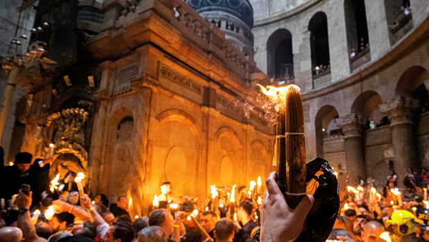 «Ανάστα ο Θεός, κρίνον τήν γην, ότι σύ κατακληρονομήσεις εν πάσι τοις εθνέσι» έψαλε ο ιερέας Χριστοφόρος Γουρλής και αμέσως μετά η εκκλησία σείστηκε από τους χτύπους των Σημάντρων που σήμαναν τη νίκη του Θεανθρώπου επί του Θανάτου.document.addEventListener("DOMContentLoaded", function () {lazym2();}); Ο γνωστός κι ως «ιπτάμενος ιερέας» για άλλη μία χρονιά εντυπωσίασε με το σάλτο του από την Ωραία Πύλη ώστε να σκορπίσει με τον δικό του ξεχωριστό τρόπο δαφνόφυλλα, σύμβολα της νίκης του Χριστού, την ώρα που οι πολυέλαιοι της εκκλησίας κουνήθηκαν -σαν από σεισμό- και οι πιστοί χτύπησαν τις πάγκες, τα στασίδια, συμμετέχοντας με αυτό τον ιδιαίτερα ηχηρό τρόπο στη χαρμόσυνη είδηση της Ανάστασης του Κυρίου....